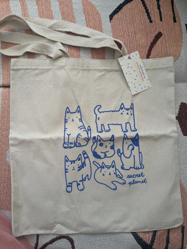 super cute screen printed tote bag from an awesome Toronto artist. unfortunately I have way too many totes and haven't gotten around to using this one.