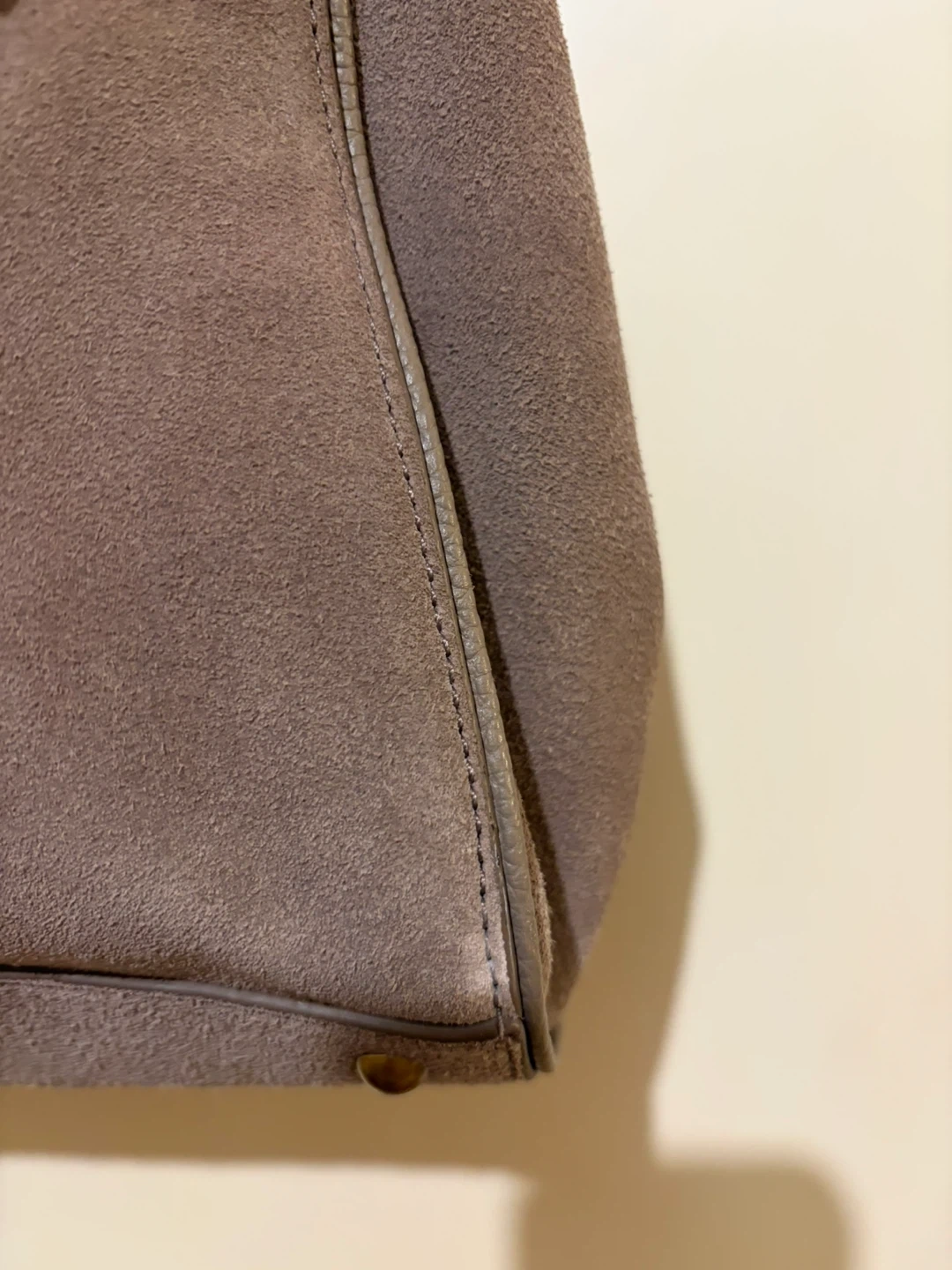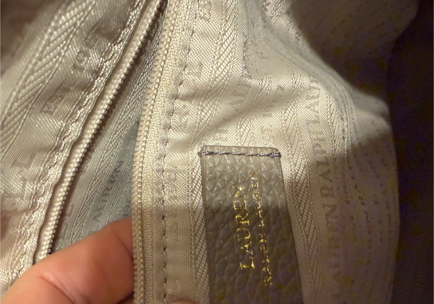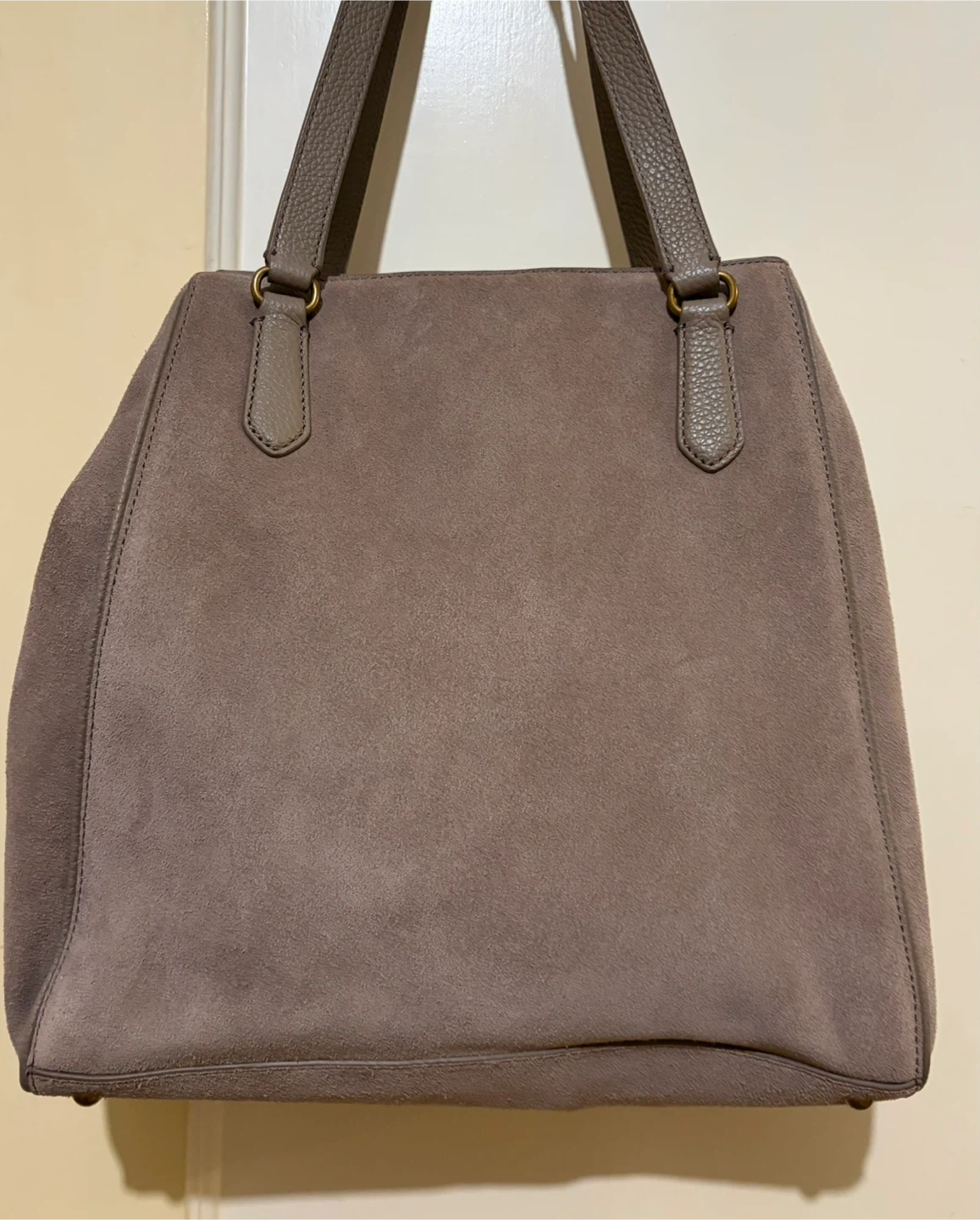 Lauren Ralph Lauren tote bag. Suede material. Embossed logo detail. Very clean inside , straps in excellent condition . I made that stain in the front trying to clean it . Magnet snap closure .