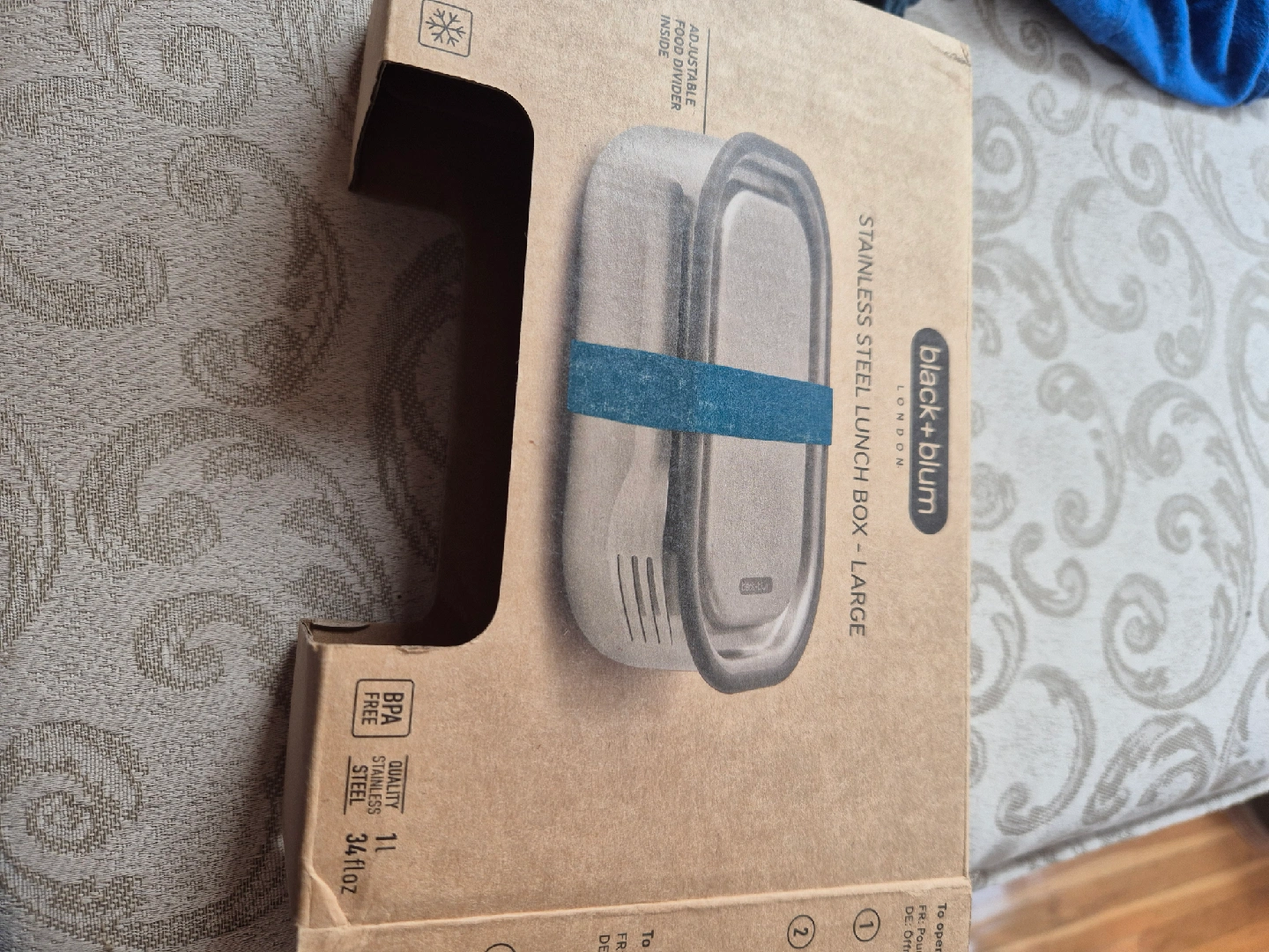 Selling a Black + Blum stainless steel lunch box in the large size. It features an adjustable food divider and is BPA free. Made with quality stainless steel. Perfect for taking your lunch to work or school!