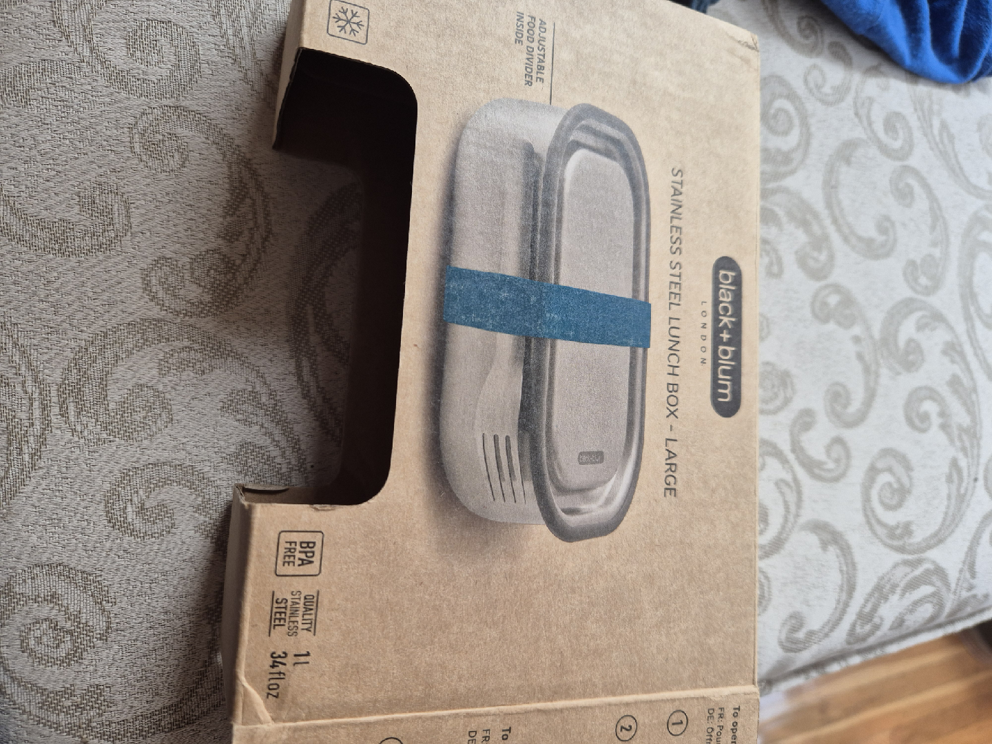 Selling a Black + Blum stainless steel lunch box in the large size. It features an adjustable food divider and is BPA free. Made with quality stainless steel. Perfect for taking your lunch to work or school!
