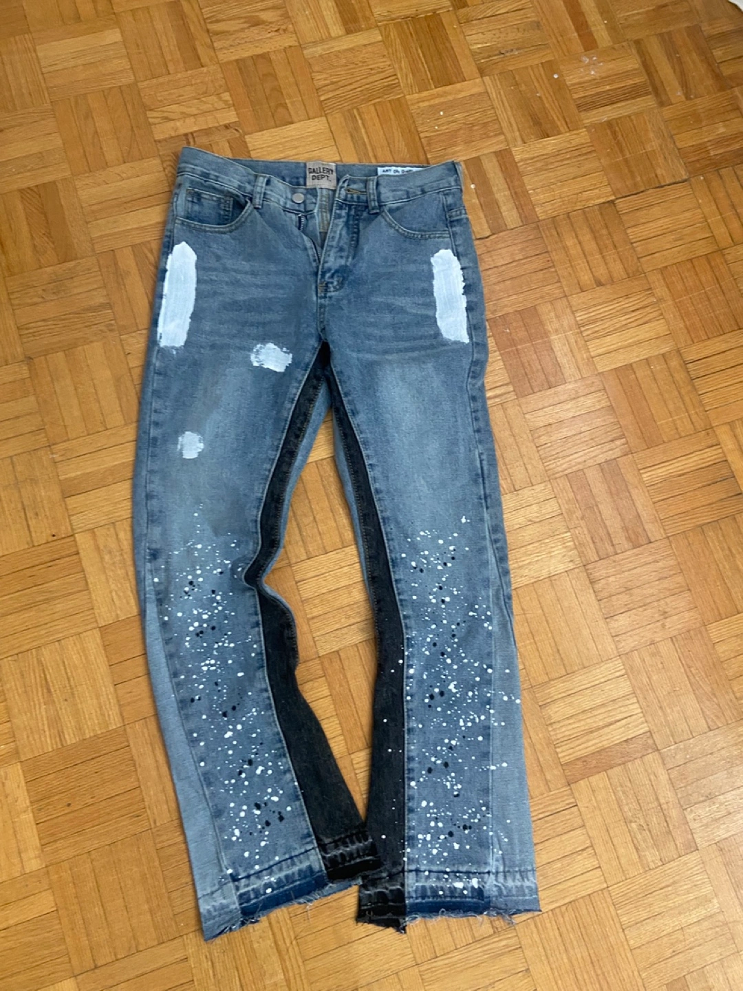 These are the Flared Gallery Dept Paint Splatter jeans size Medium but it really fits like a size Small