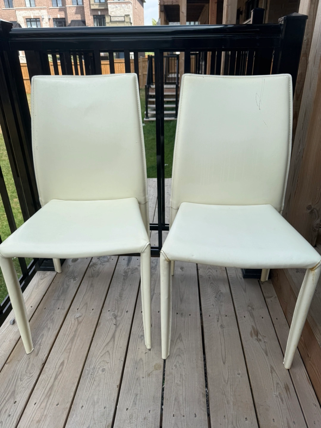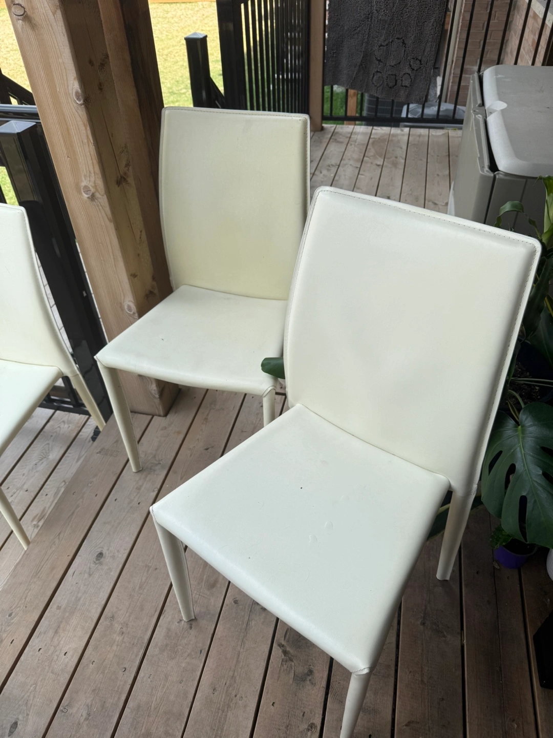 Selling a set of 4 cream white dining chairs. They would be perfect for your dining room or kitchen. Please note that there are some signs of wear.