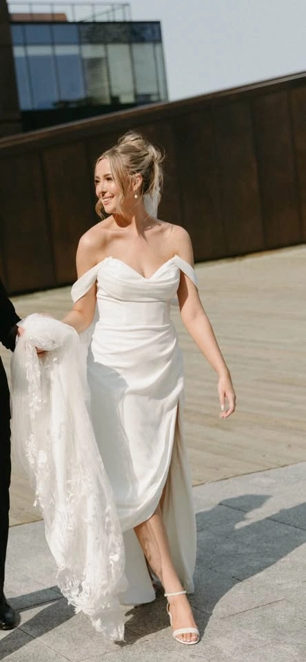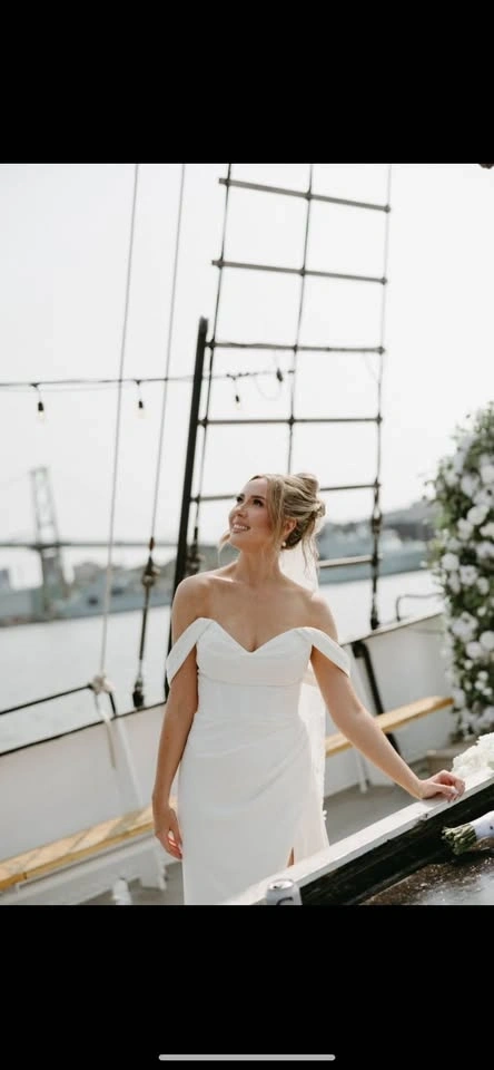 Martina Liana 1683 Wedding Dress, originally size 12, altered to fit approximately a size 8. Originally purchased for around $3000. Includes custom, removable off-the-shoulder sleeves. The original straps are still intact, offering versatility in how the dress can be worn. Worn once and professionally dry cleaned. Open to try-ons. For reference, my measurements at the time were: Bust - 33.5", Waist - 27", Hips - 38.5". Purchased at Bridal Boutique in Saskatoon.