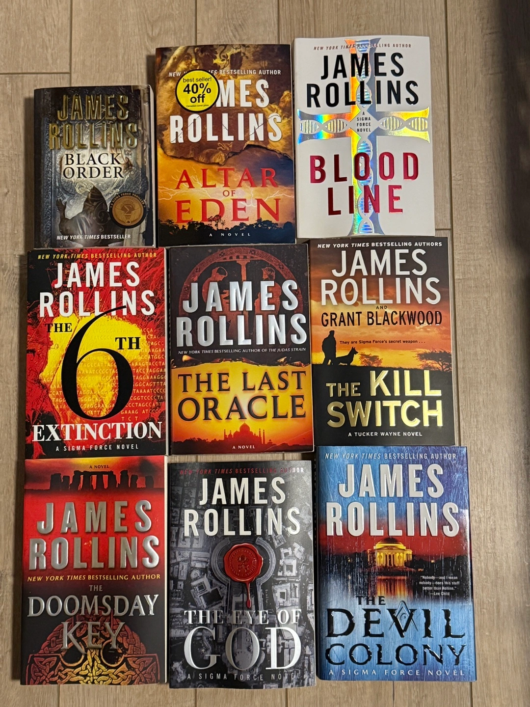 Bundle of nine James Rollins novels. Includes various titles from the Sigma Force series and standalone works. New York Times bestsellers.