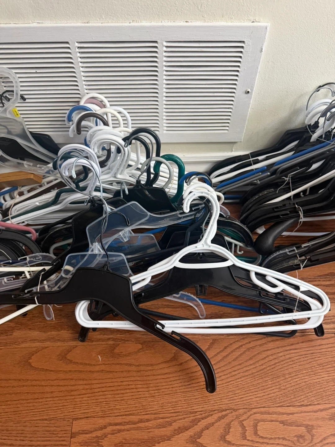 Features 112 pieces of clothing hangers