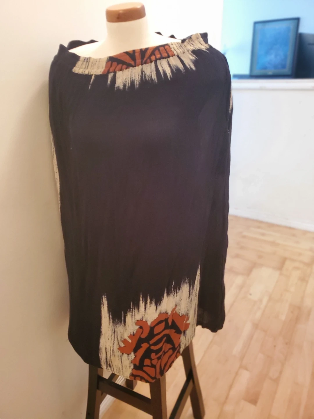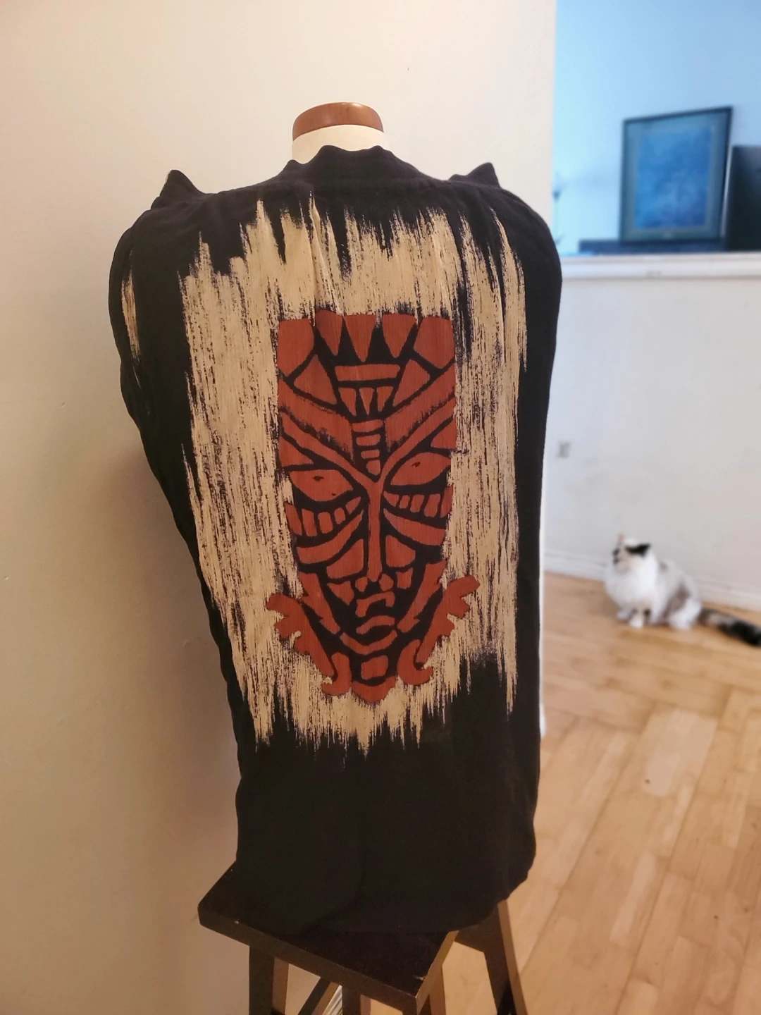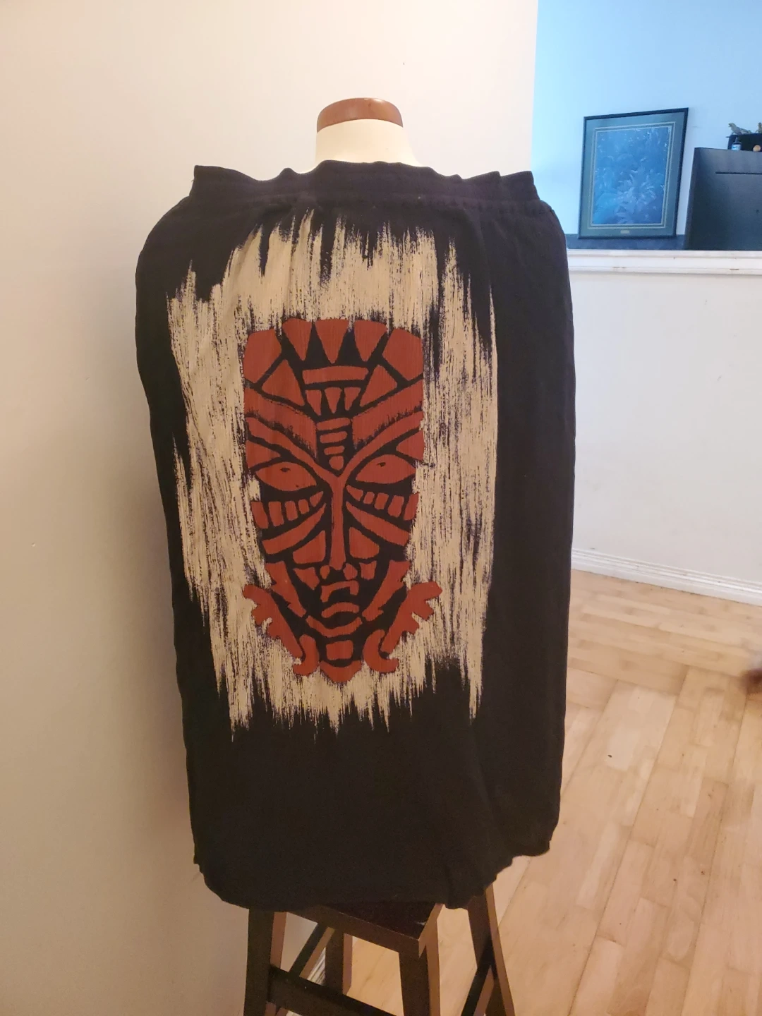 This Impasia Skirt features a unique tiki mask design on the back. It's made of 100% rayon for a light and airy feel. This size medium Skirt is perfect for adding a touch of flair to your casual wardrobe. Cedar pick up.