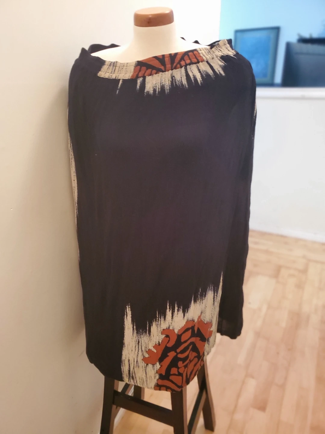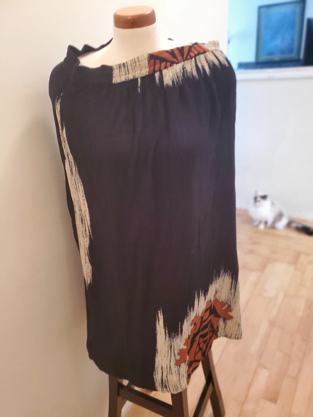 This Impasia Skirt features a unique tiki mask design on the back. It's made of 100% rayon for a light and airy feel. This size medium Skirt is perfect for adding a touch of flair to your casual wardrobe. Cedar pick up.