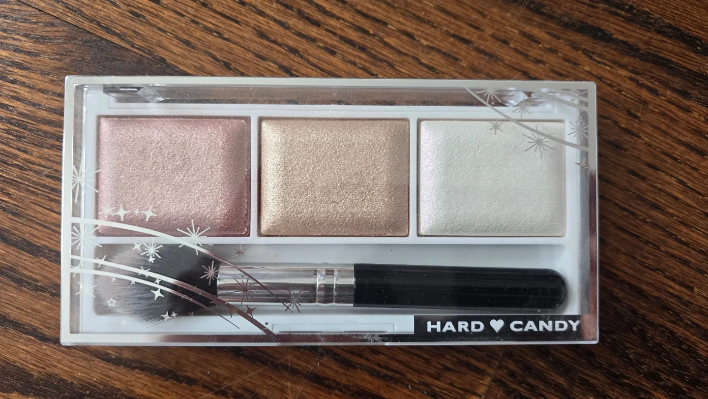 - Hard Candy Baked Glow Trio in Rooftop Rendezvous 1334 with three highlighting powders.