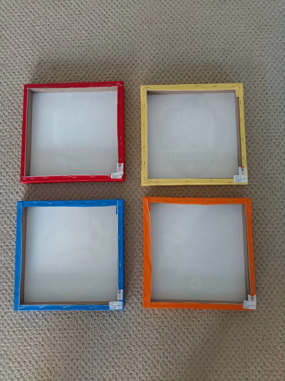 Like new condition. Each piece measures approximately 11. 25" L x 11. 25" H x 1" D. Background colours are little bit darker than shown in photos.