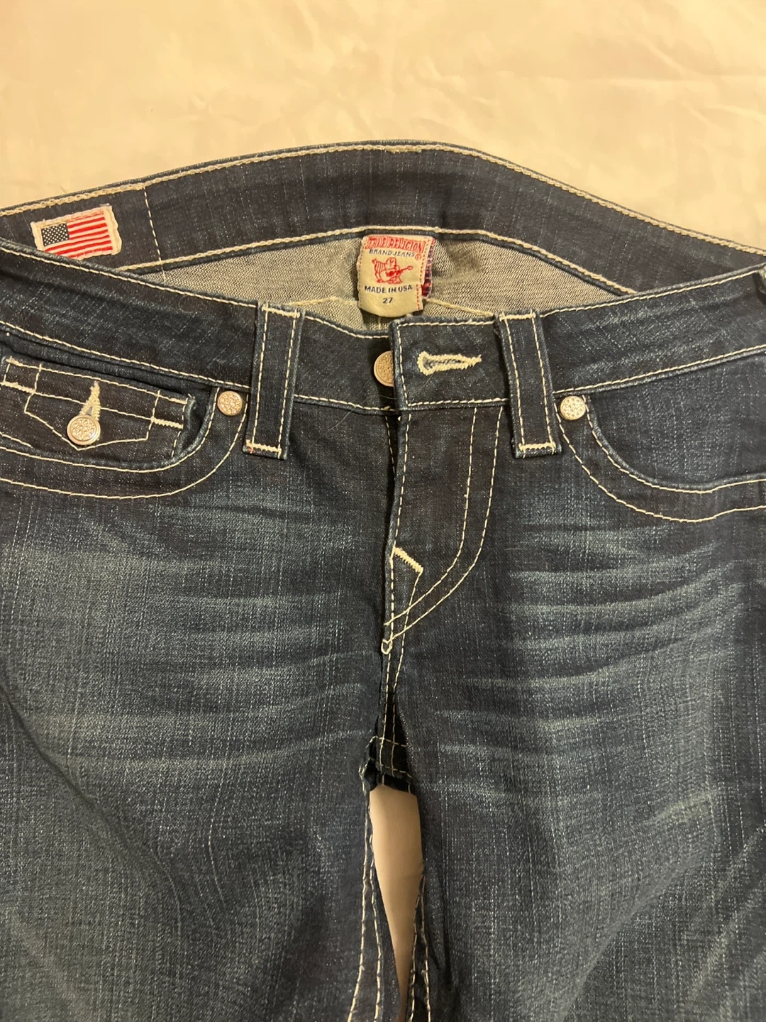 Selling a pair of True Religion jeans in size 27. They are in great condition and ready for a new home!