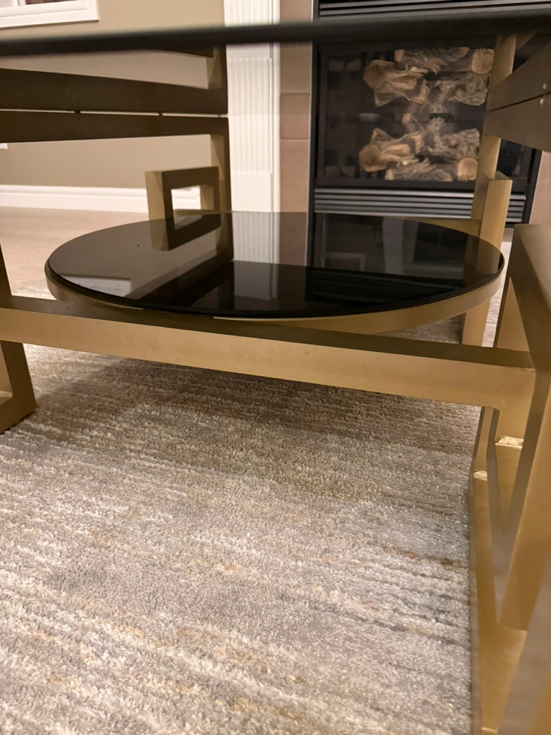 Modern Coffee Table with Black Glass Top and Gold Frame