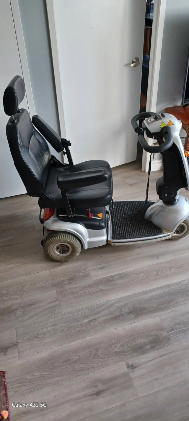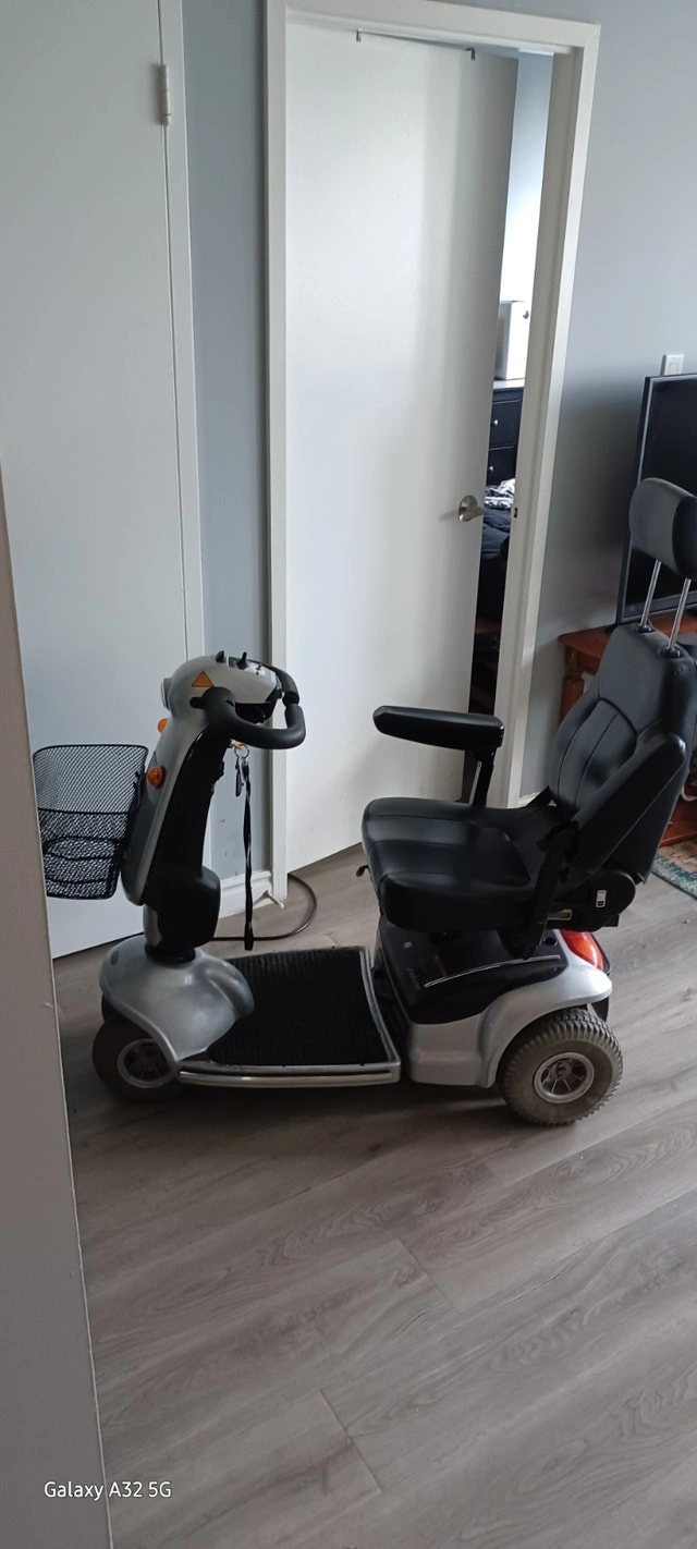 Selling my Shoprider Cobra 778EL mobility scooter, bought new in Summer 2023. It's silver and has been used very little. I'm selling because I bought a new one and I'm moving soon, so I need it gone ASAP! This is a 3/4 wheel scooter with a C-type delta tiller. It features an electric seat lift and a full light package. The batteries are 36AH with a 5A charger. It offers 4-wheel stability with 3-wheel maneuverability. Weight capacity is 300 lbs. Dimensions are 43.5"L x 22"W x 41"H. Total weight with batteries is 160 lbs. Motor is 0.84hp, with a top speed of 5mph. Driving distance is up to 20 miles on a full charge. Turning radius is 43". It's easy to maneuver, even in tight spaces like elevators, making it great for new riders. Batteries are still in great condition. Comes with a basket, mirrors, two keys, the manual, and the charger. Feel free to stop by for a viewing and a test ride!