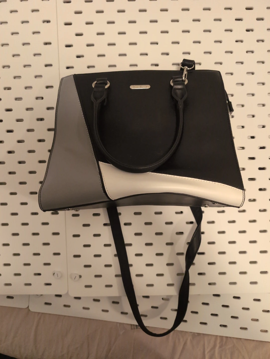 Black, Grey, and White Colour-Blocked Handbag