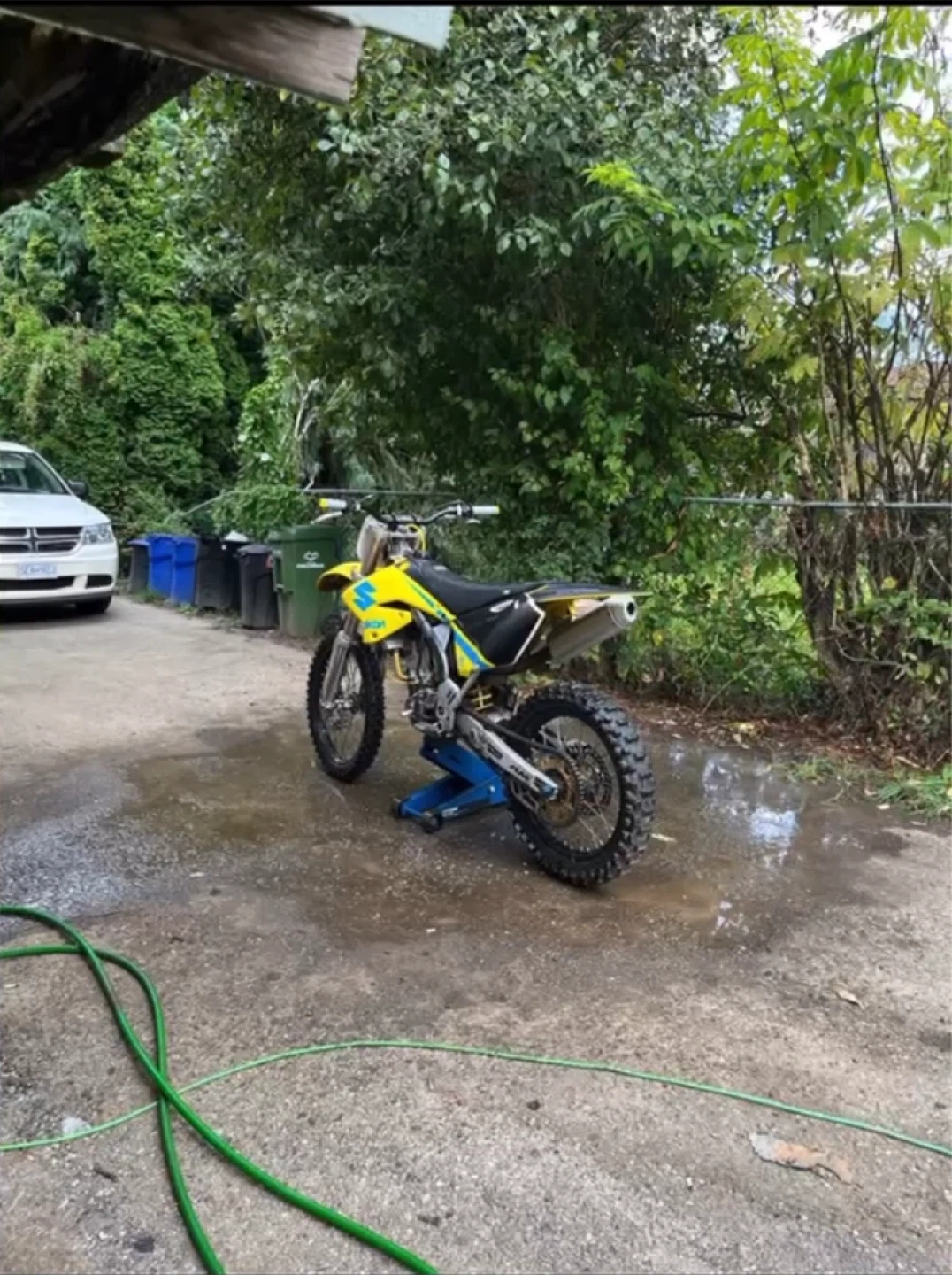 A Suzuki RM-Z dirt bike in yellow and black. This has had top end work done fresh piston fresh valves and valve seals, valve were lapped in dont worry there steel valves as I was going for reliability when I built this bike, zero hours on all new stuff needa valve shims still I was gunna buy but Im not plaining to keep the bike to ride I have proof of all work and theres lots of aftermarket parts no tittle but can give bill of sale