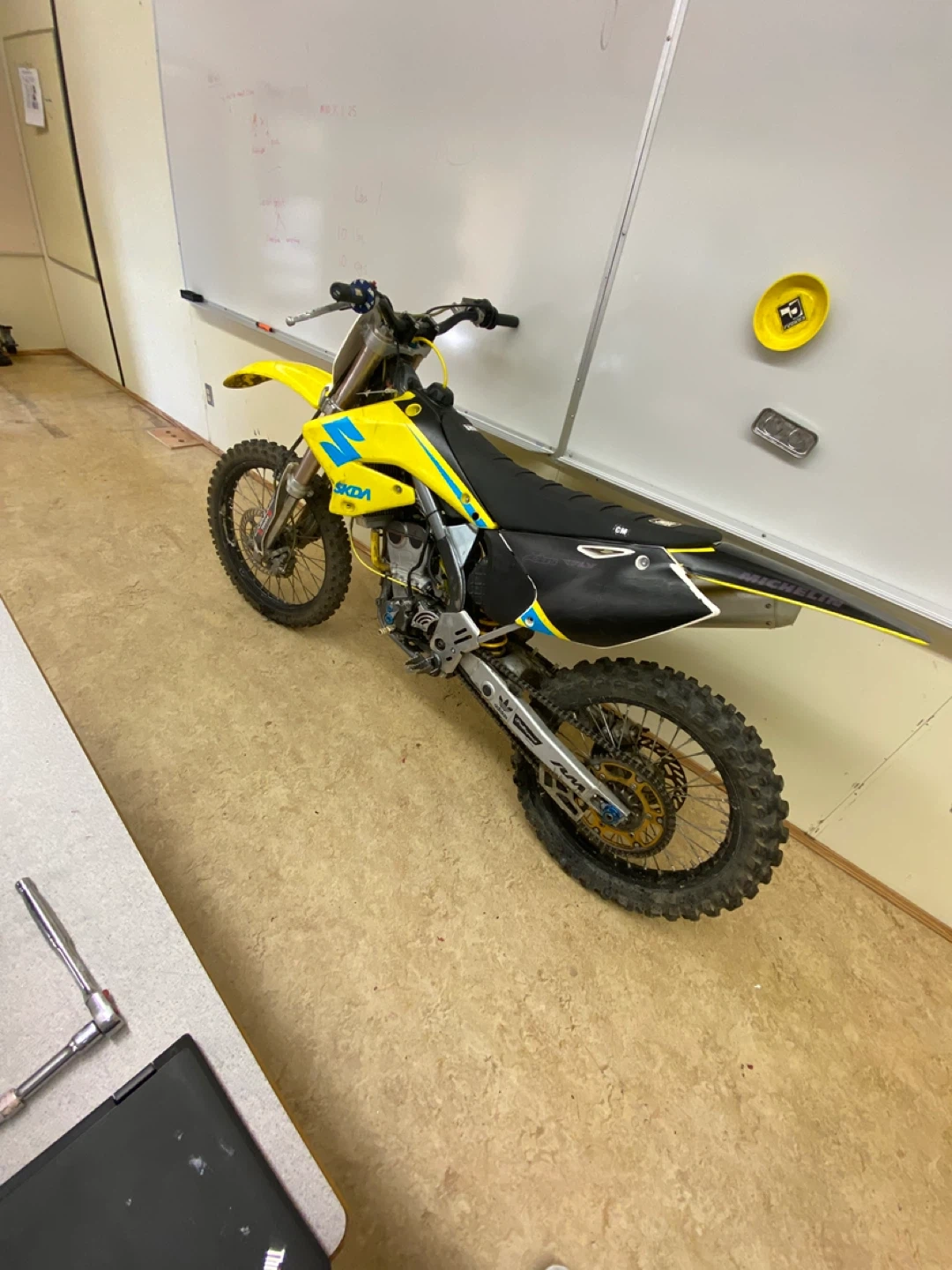A Suzuki RM-Z dirt bike in yellow and black. This has had top end work done fresh piston fresh valves and valve seals, valve were lapped in dont worry there steel valves as I was going for reliability when I built this bike, zero hours on all new stuff needa valve shims still I was gunna buy but Im not plaining to keep the bike to ride I have proof of all work and theres lots of aftermarket parts no tittle but can give bill of sale
