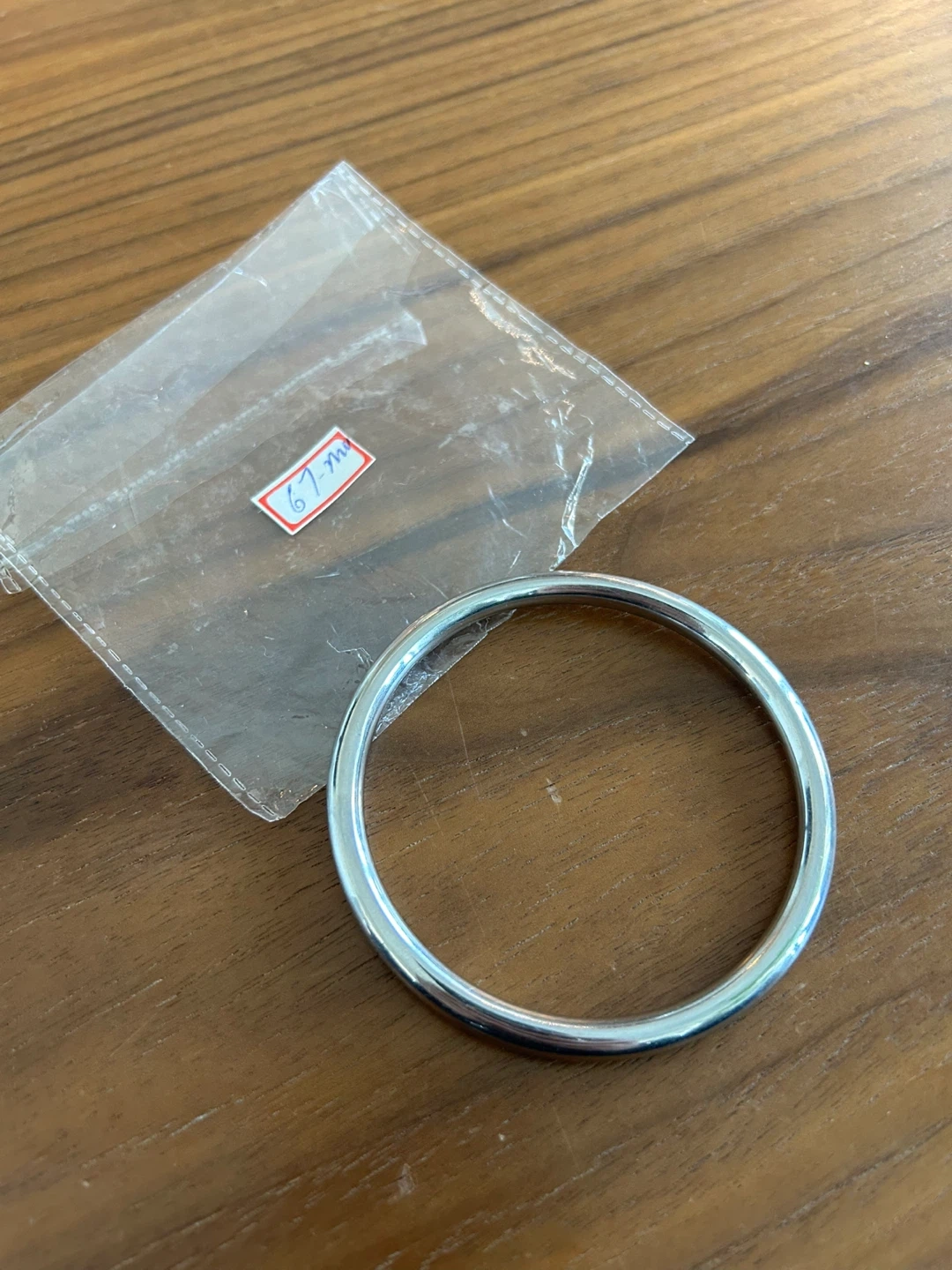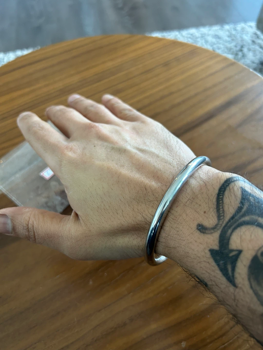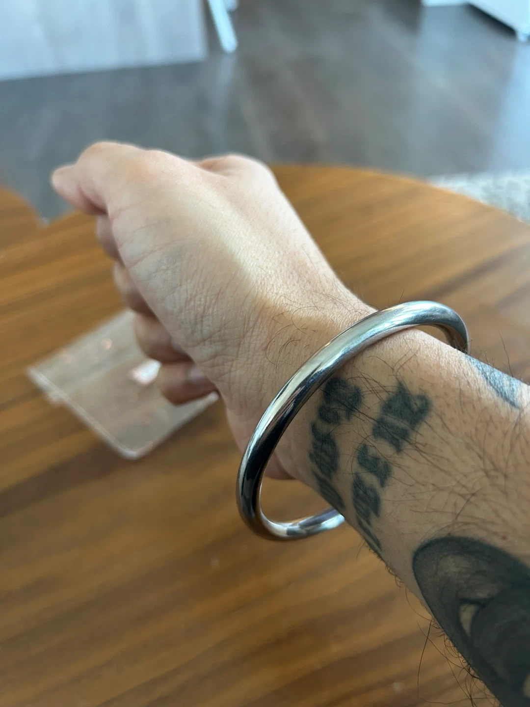 Selling a stainless steel bangle bracelet. It's 67mm in diameter. It's not hollow and is made of solid industrial grade steel and is in great condition!