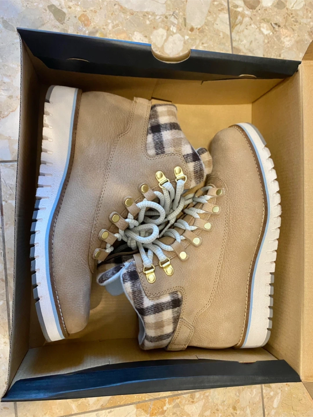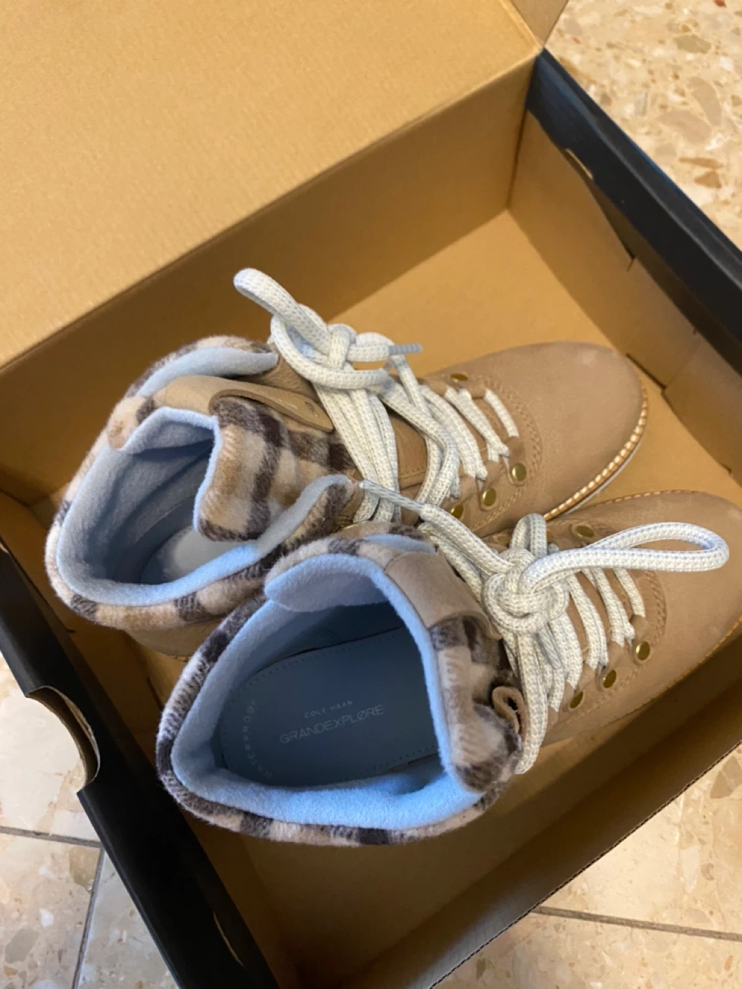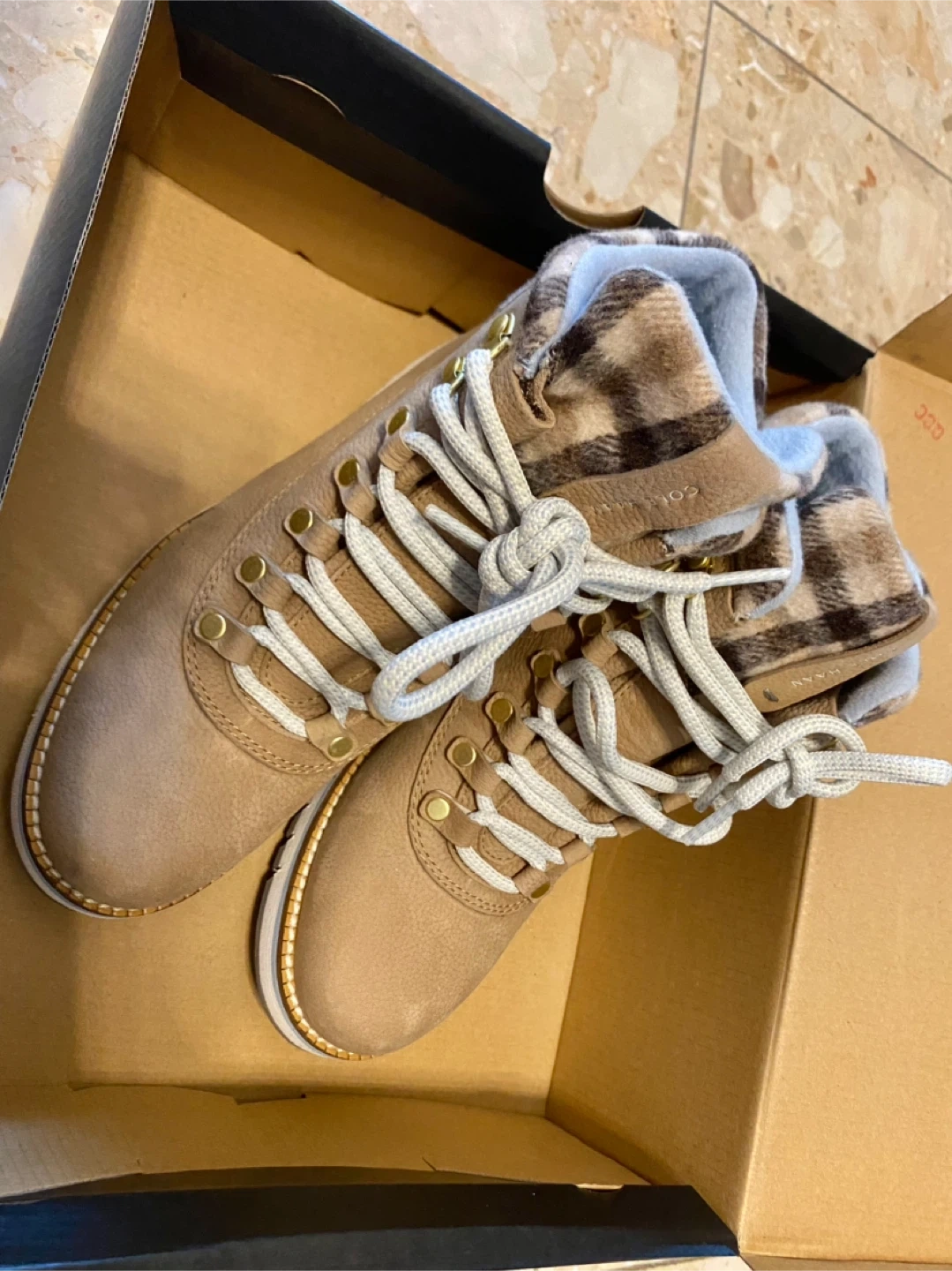 These Cole Haan snow boots are in pristine condition! Unfortunately the size doesn’t fit me but they have only been worn probably once! They are so cozy, fashionable, and waterproof and perfect for the rain and snow! They go well with dresses or jeans.