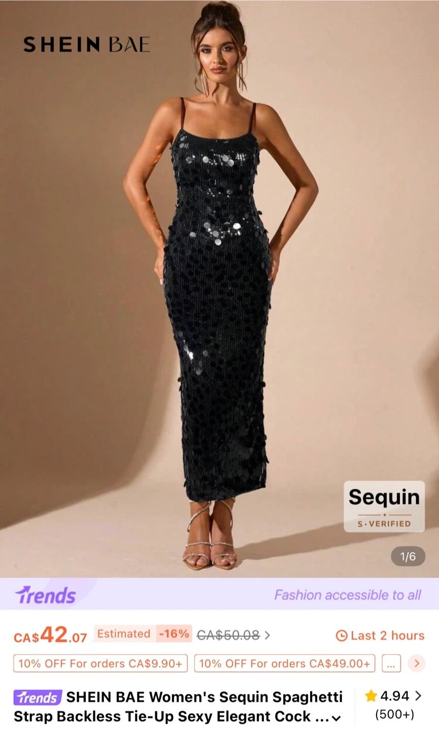 Selling a SHEIN BAE women's sequin spaghetti strap backless tie-up dress! It's a sexy and elegant cocktail dress. Originally listed for CA$42.07.