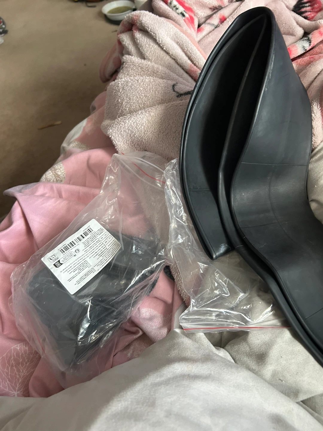 This is a bicycle inner tube. It's made of rubber and comes with some small accessories. It's suitable for a bike tire.