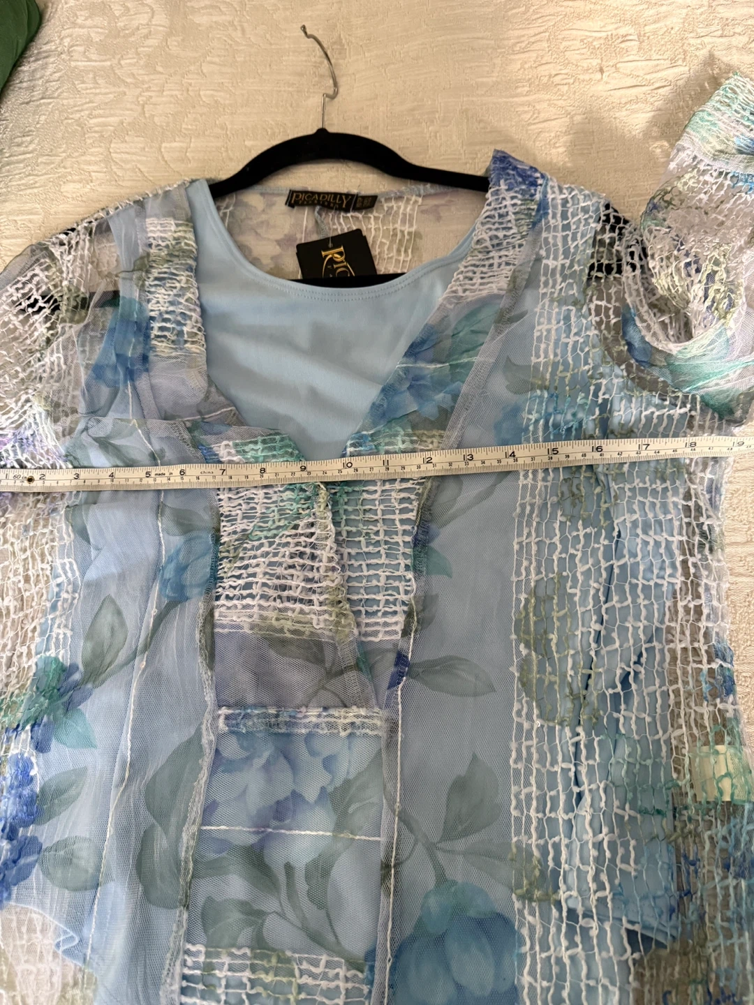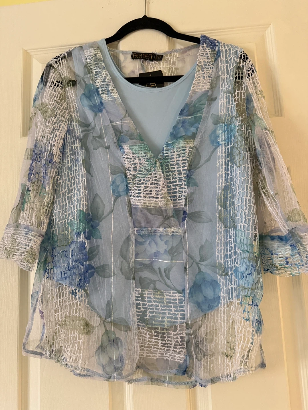 Brand New Picadilly Blue Floral Mesh Tunic Top