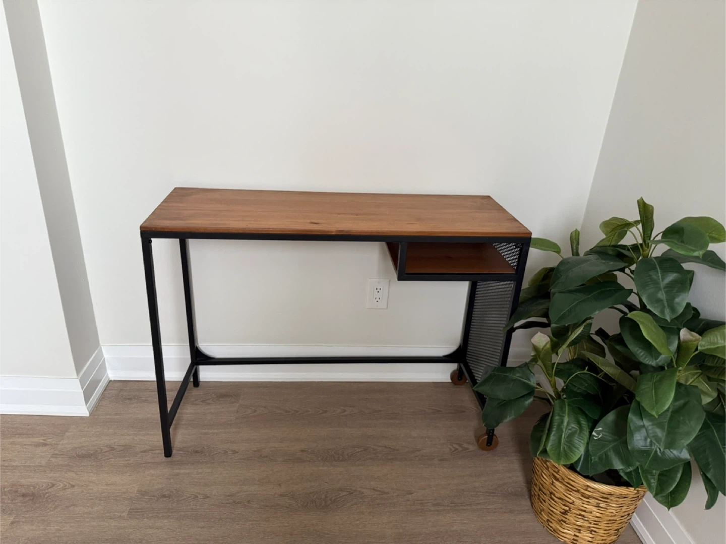 Wood and Metal Desk with Wheels