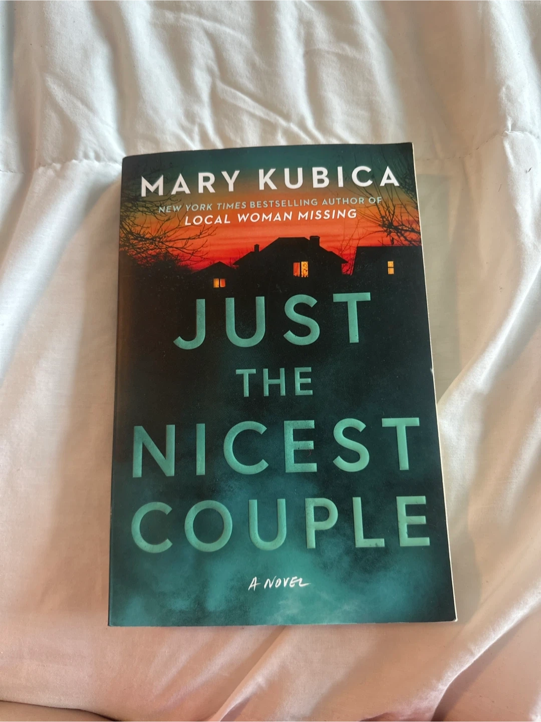 Mary Kubica's novel, Just the Nicest Couple. This is a thrilling mystery novel. Perfect for fans of suspenseful reads!