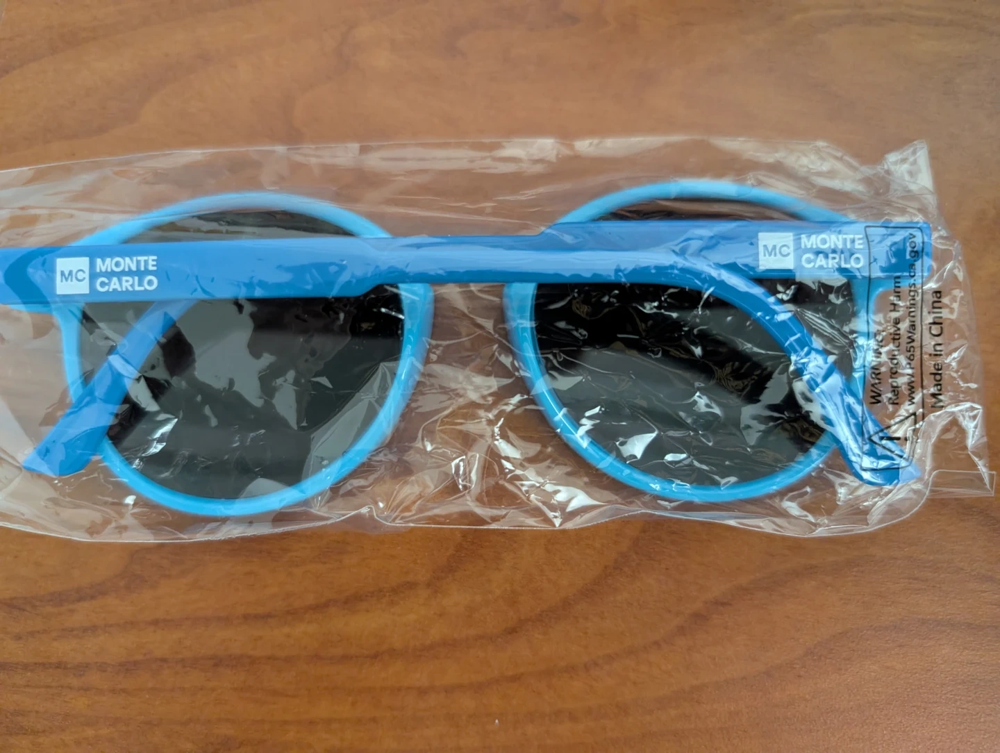 Monte Carlo sunglasses. Blue plastic frames with black lenses. Perfect for sunny days!