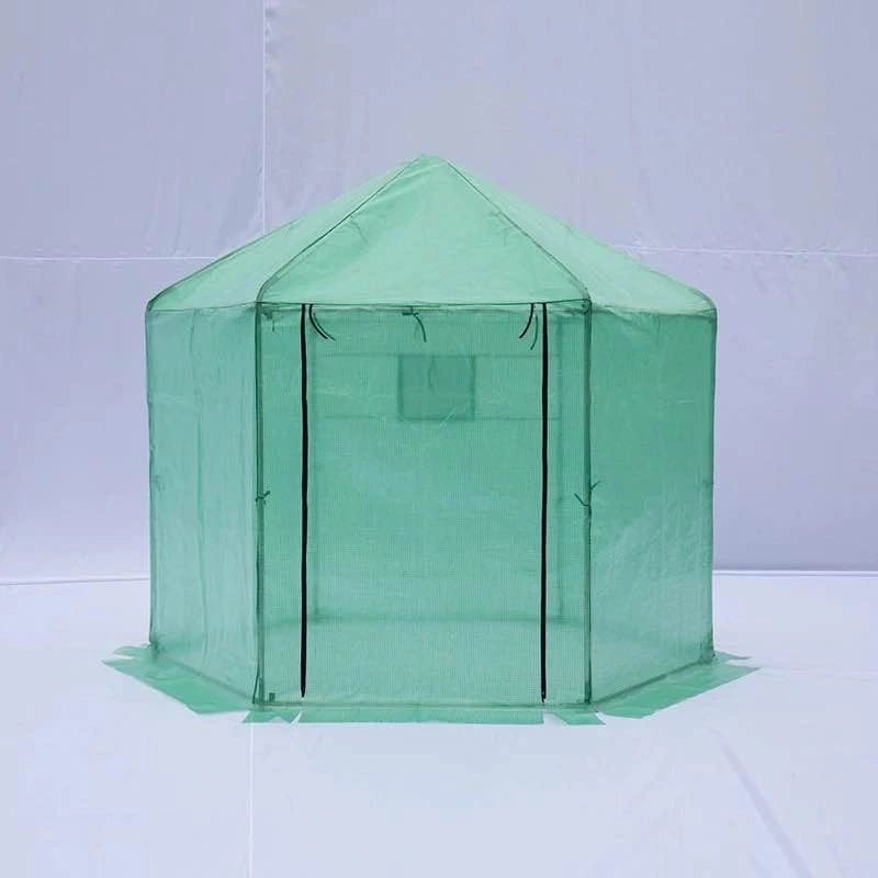 Brand new in box walk-in hexagonal greenhouse with a reinforced metal frame and durable waterproof cover. Features zippered roll-up door, UV protection, and strong insulation—perfect for extending your growing season.