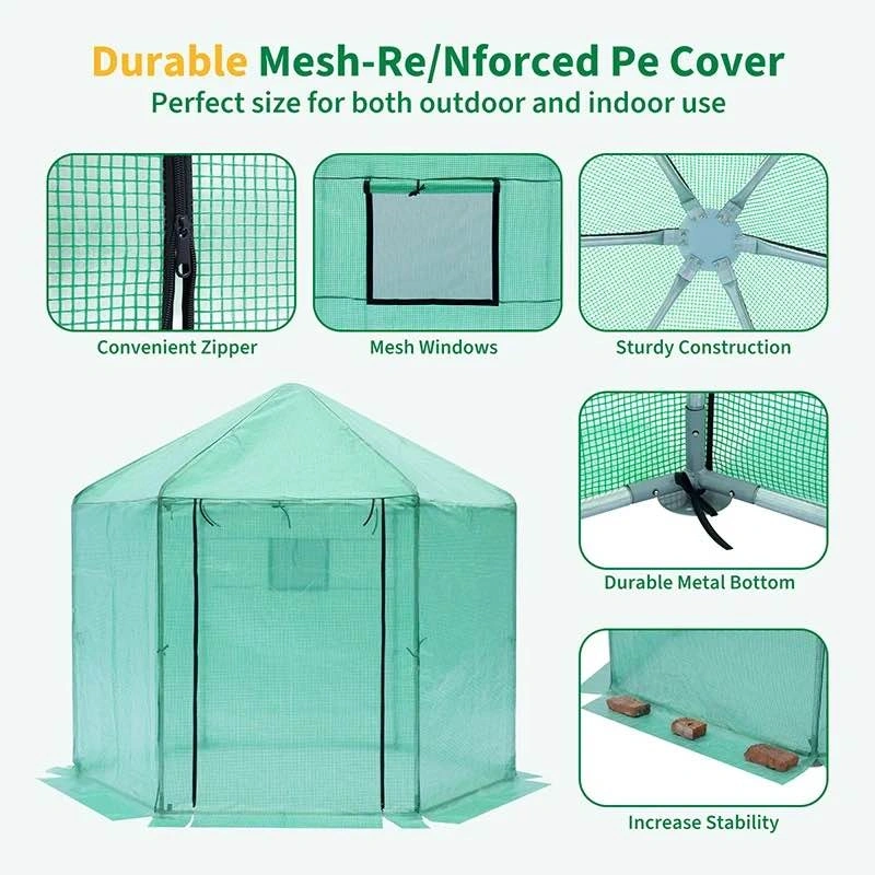 Walk-In Hexagonal Greenhouse 96.8” – Heavy Duty Metal Frame