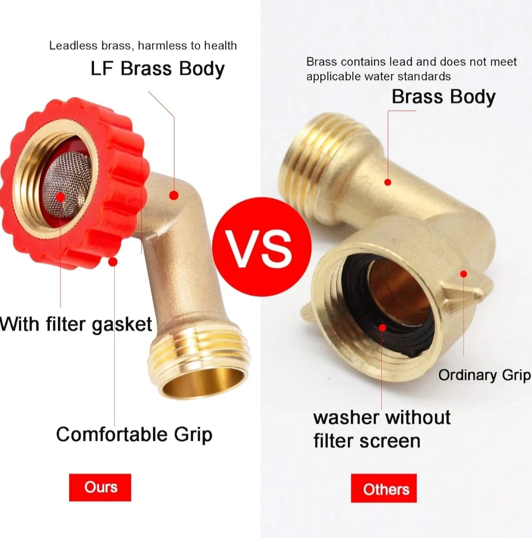 This brass elbow connects your garden hose to a spigot with a comfortable, easy-grip handle. It's designed with a filter gasket to keep debris out. Includes two red replacement gaskets.