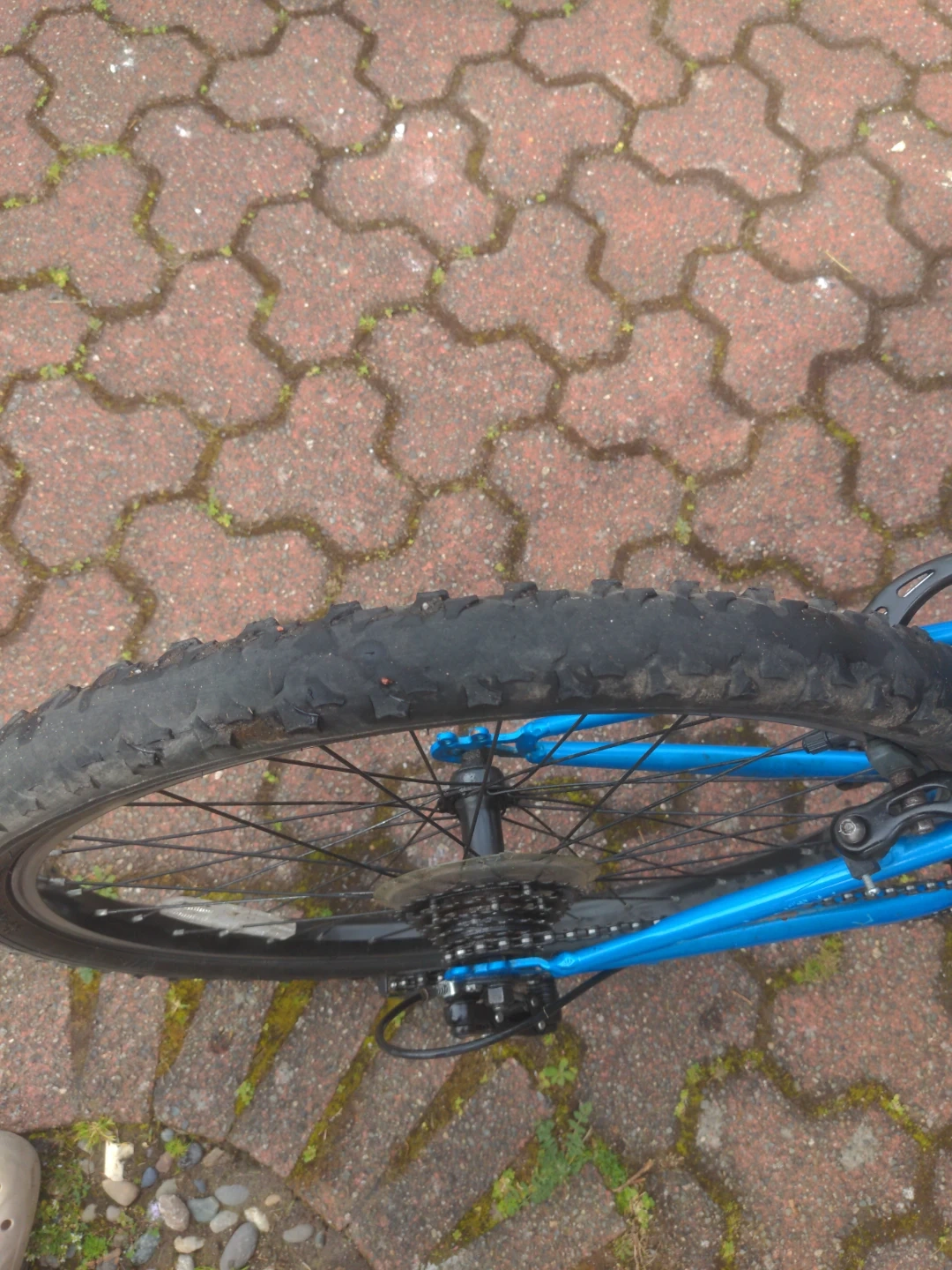 This is a blue kids' mountain bike. It features a sturdy frame and rugged tires for off-road adventures. The bike has a single-speed drivetrain.