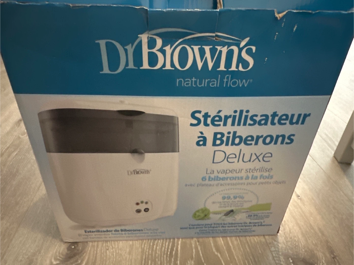 Selling a Dr. Brown's Deluxe Bottle Sterilizer! It's in great condition and comes with the original box and all the accessories. Perfect for sterilizing up to 6 bottles at once. A great way to keep your baby's bottles clean and safe!