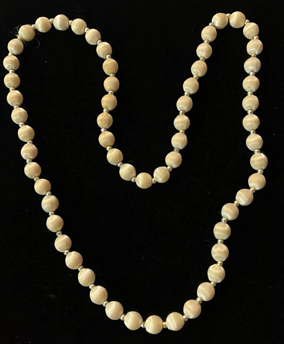 Vintage Wood Effect Necklace With Tube Beads - 18 Inches