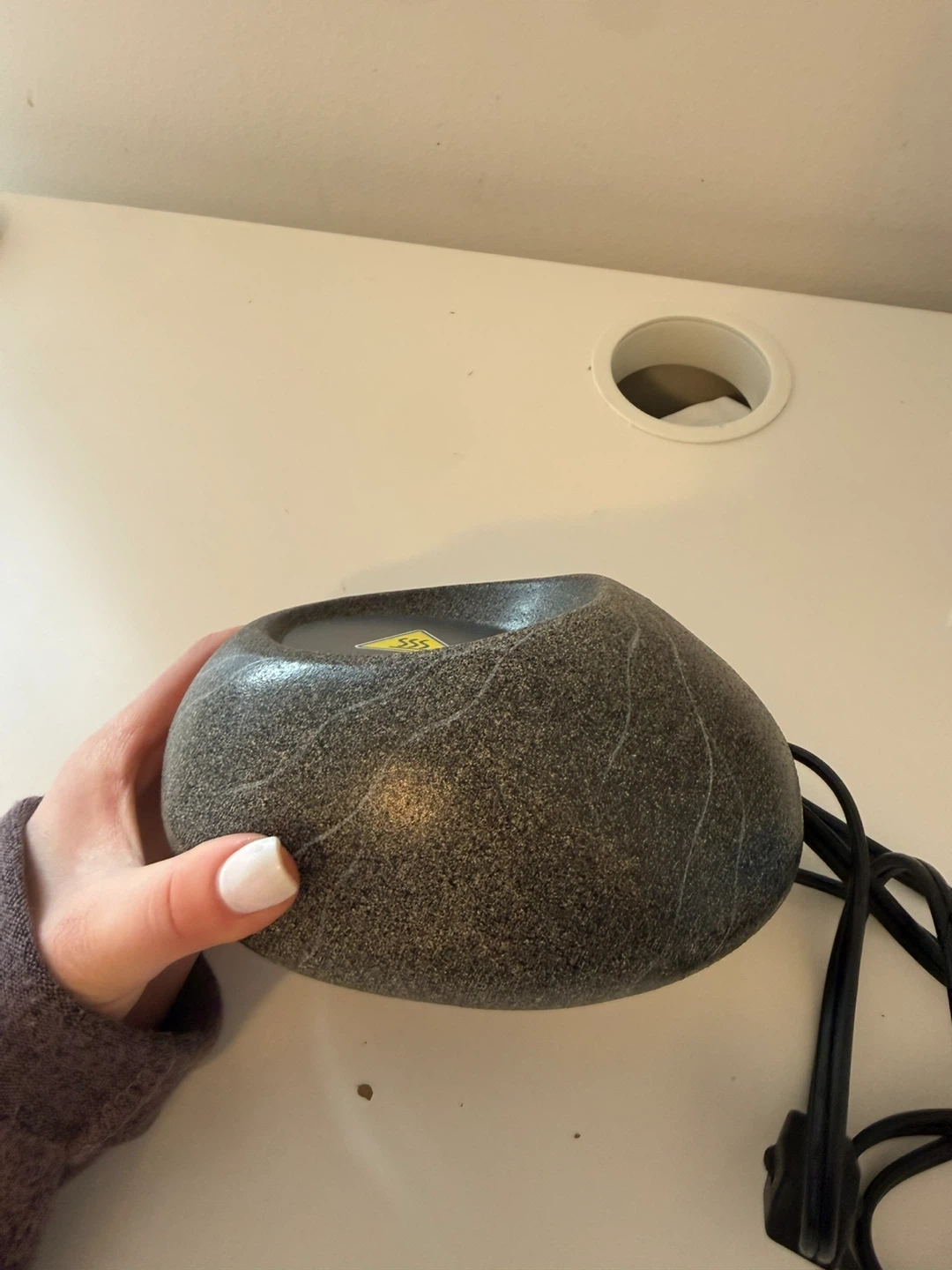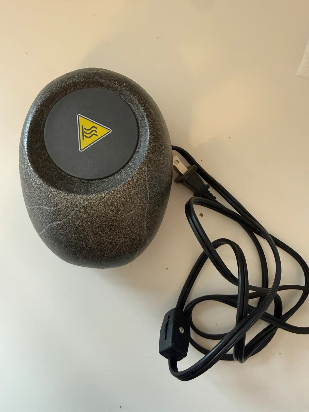 Electric cup warmer with a stone-like appearance. It comes with a power cord and an inline switch. Great for keeping tea/coffee warm outside in a cold weather or while working on the desk. Was never used so in a perfect condition.