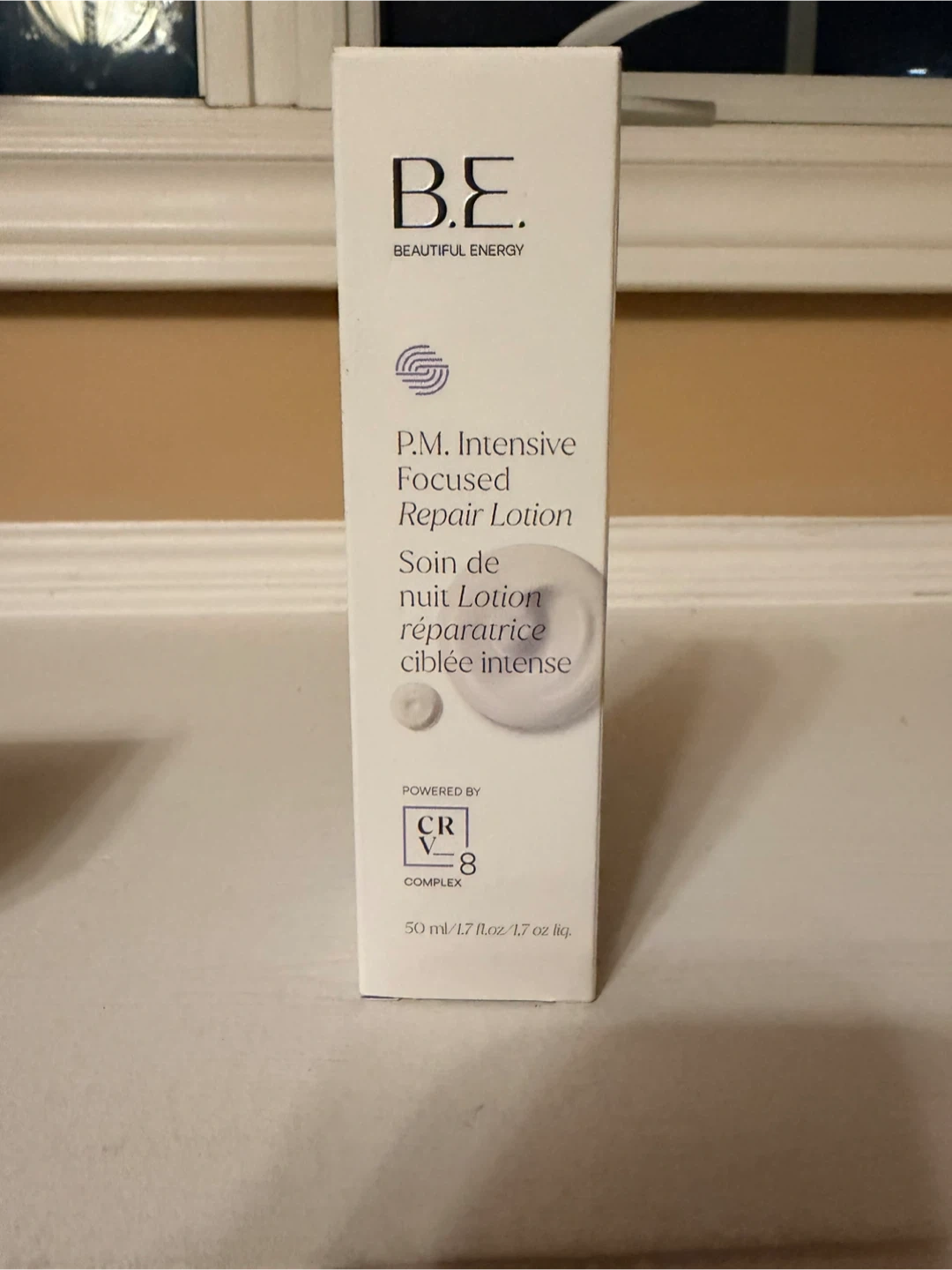 Selling a B.E. Beautiful Energy P.M. Intensive Focused Repair Lotion. This lotion is a soin de nuit lotion réparatrice ciblée intense, powered by CR-V8 complex. The size is 50 ml / 1.7 fl.oz / 1.7 oz liq