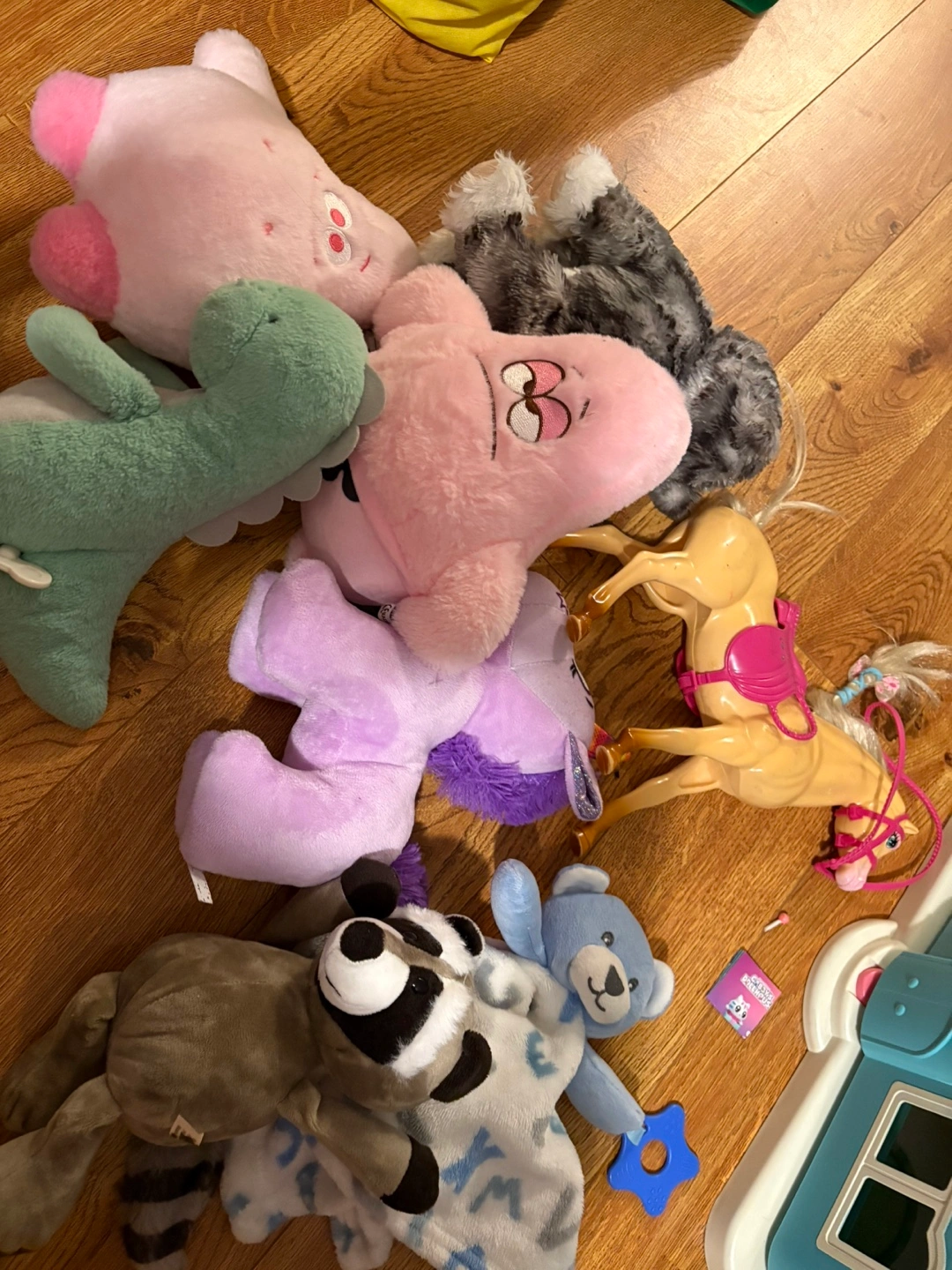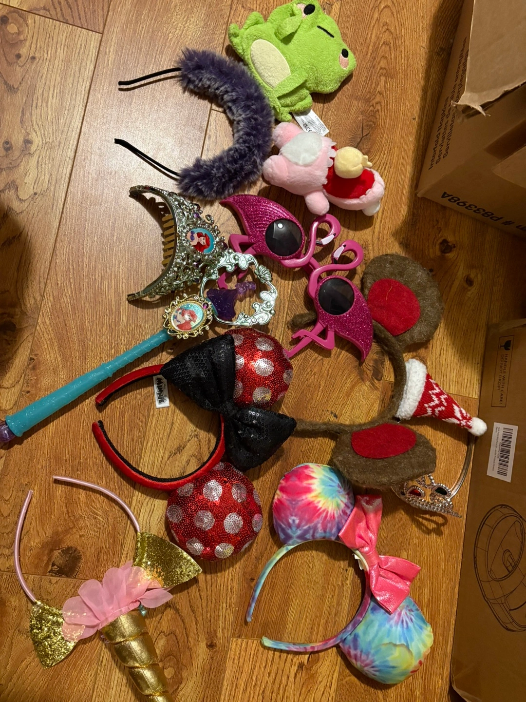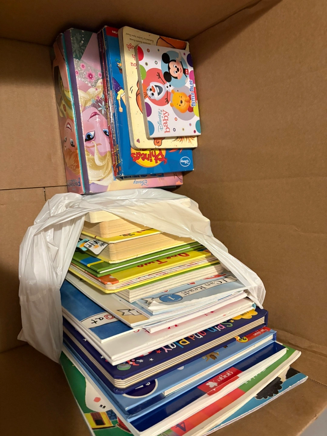 Selling a bundle of kids' toys and books. Includes Disney baby books, plush toys, headbands, and other various toys. Great for toddlers and young children!