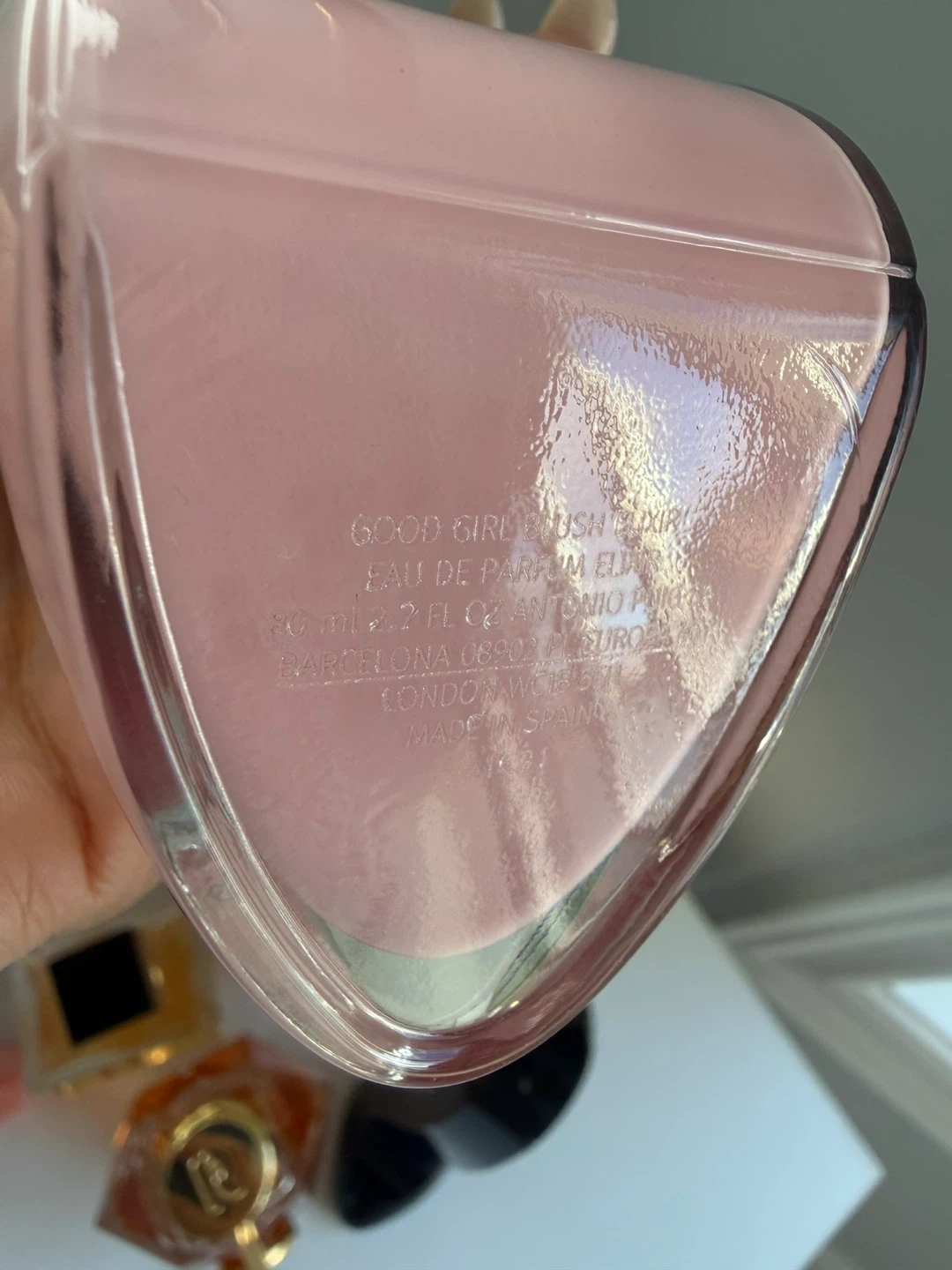 Carolina Herrera Good Girl Eau de Parfum Elixir. 80 ml 2.7 FL OZ. Made in Spain. This fragrance is bottled in a distinctive stiletto heel shape.