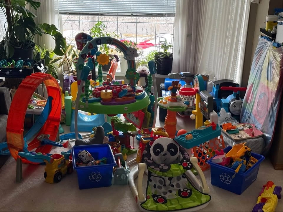 Huge bundle of kids toys and activity gear in good working condition. Perfect for playrooms, daycares, preschools, or parents looking to stock up on toys at a great value. Includes a variety of: Activity centers & jumpers, Ride-ons and push toys, Car tracks & playsets, Musical & learning toys, Trucks, bins, and accessories. Most toys are clean and fully functional. The Thomas train ride-on and Paw Patrol Power Wheels will need new battery replacements. Everything else works great. MUST TAKE ALL ITEMS. I’ll also be adding a few more toys as I continue decluttering. Great deal for someone who wants lots of toys in one go! Smoke and pet free home. Pick up in Rockyridge NW.