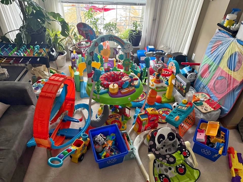 Huge bundle of kids toys and activity gear in good working condition. Perfect for playrooms, daycares, preschools, or parents looking to stock up on toys at a great value. Includes a variety of: Activity centers & jumpers, Ride-ons and push toys, Car tracks & playsets, Musical & learning toys, Trucks, bins, and accessories. Most toys are clean and fully functional. The Thomas train ride-on and Paw Patrol Power Wheels will need new battery replacements. Everything else works great. MUST TAKE ALL ITEMS. I’ll also be adding a few more toys as I continue decluttering. Great deal for someone who wants lots of toys in one go! Smoke and pet free home. Pick up in Rockyridge NW.
