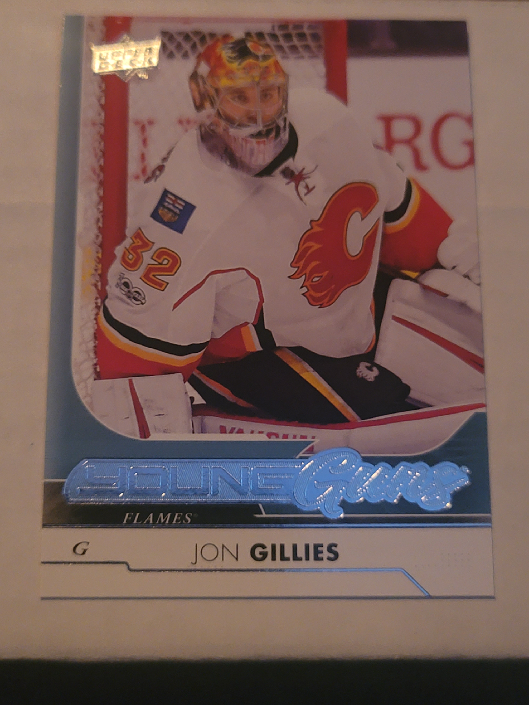 Selling a Jon Gillies Young Guns hockey card from the 2017-18 Upper Deck Series 1 Hockey collection. A great addition for any Flames fan or hockey card collector!