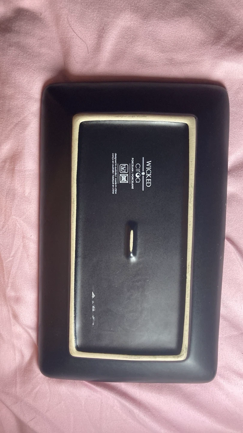 Black rectangular tray with a pink floral skull design. Dishwasher safe. Made of porcelain. It came from homesense and has not been used