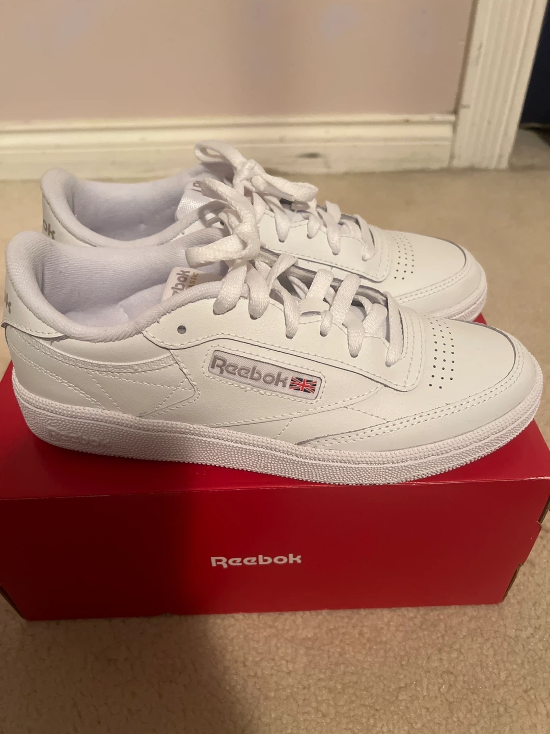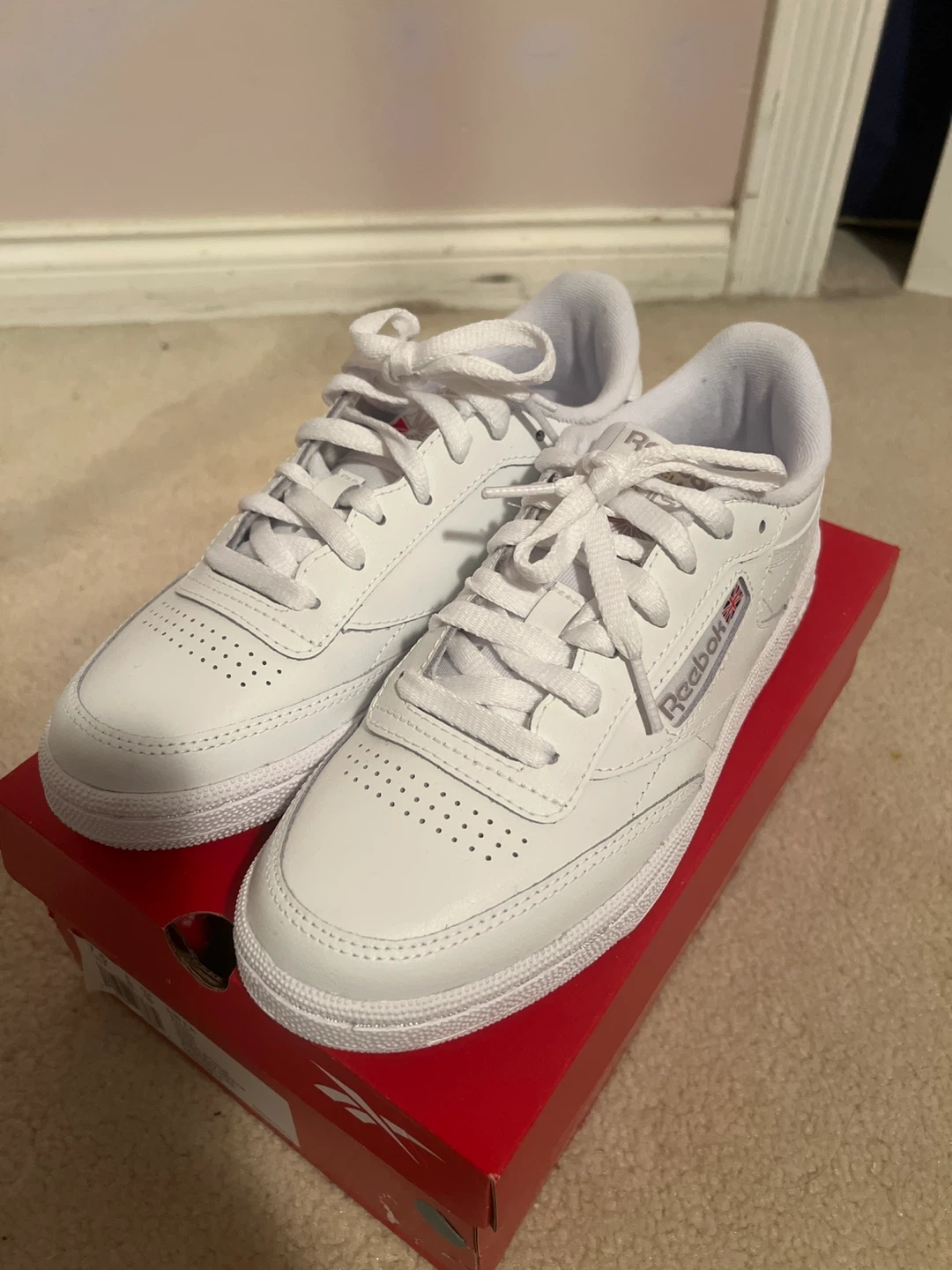 Classic Reebok Club C 85 sneakers in white leather. Has never been worn and is size 7.5!!