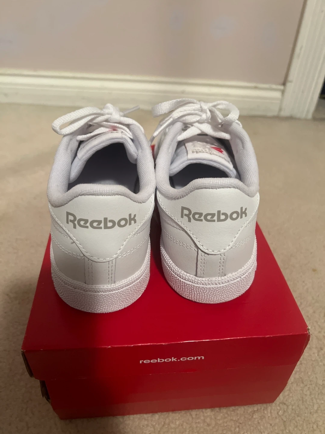 Classic Reebok Club C 85 sneakers in white leather. Has never been worn and is size 7.5!!