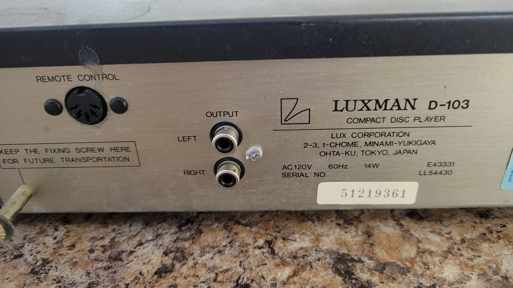 Luxman Compact Disc Player D-103