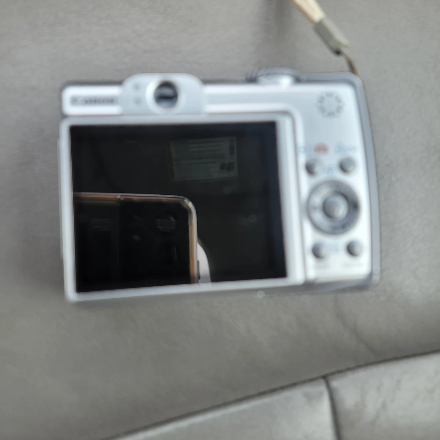 A silver Canon PowerShot A560 digital camera. It has a 7.1 megapixel sensor and 4x optical zoom. Great for everyday photos!