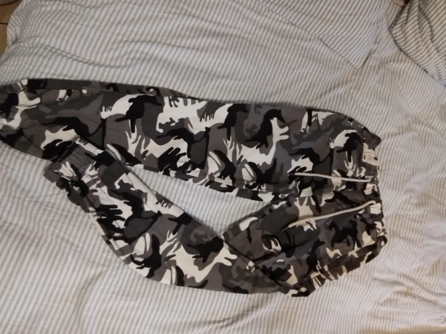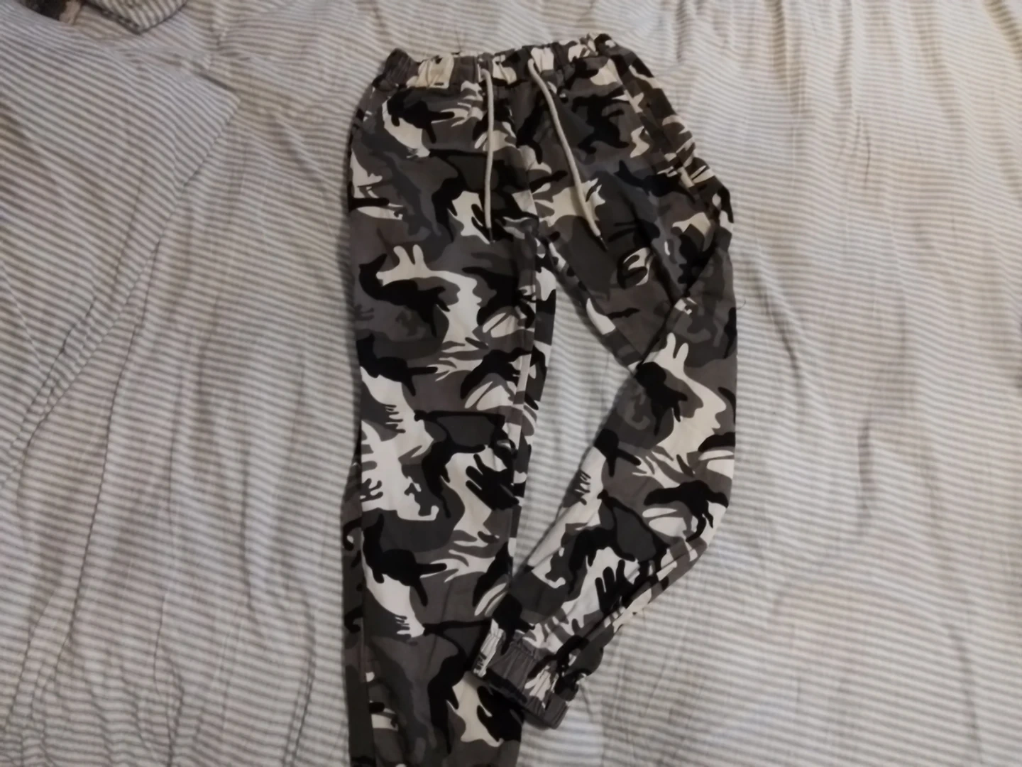 Buy & SellCamo Jogger PantsCamo Jogger Pants$15These are comfy camo jogger pants with a drawstring waist. They have elastic cuffs for a snug fit. Great for casual wear!SizesmallWHERE TO MEETCheck LocationView MapSELLERSobiaAncaster100 reviews0 chats·1 favorites·3 viewsSEND CHAT TO SELLERHi Sobia! I’m interested in your listing.Hi Sobia! I’m interested in your listing.Get the Karrot app to chatSign In to chat
