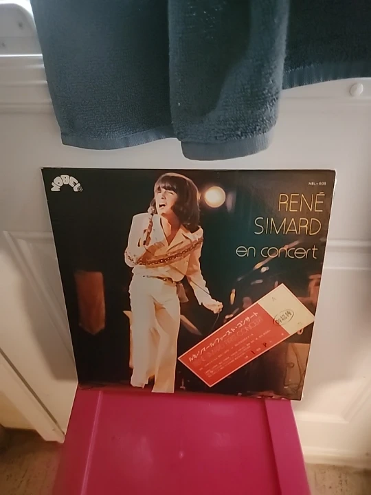 René Simard en concert vinyl record from London Records of Canada. Features songs like 'Boku No Kuni E Oide' and 'La Mer'. This is a vintage music collectible.