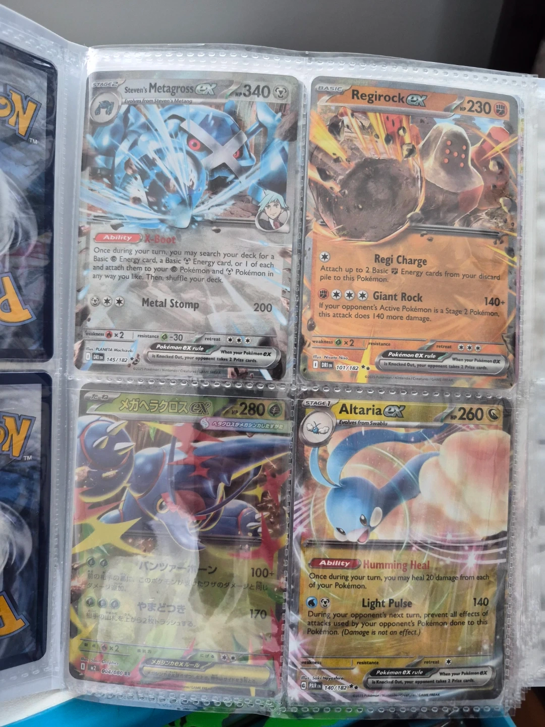 This is a collection of various Pokemon EX trading cards. It includes characters like Mega Heracross EX, Yanmega EX, Arbok EX, Garbodor V, Serperior EX, Great Tusk EX, and Iron Treads EX. Some cards are in Japanese. These cards are great for collectors and Pokemon fans alike. Will price accordingly from collector app.