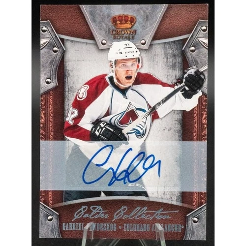 This is a 2011-2012 Panini Crown Royale Calder Collection Autograph Rookie card for Gabriel Landeskog, numbered 10 out of 99. The card is in a penny sleeve and top-loader. Feel free to message if you have any questions!