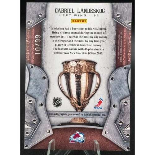 This is a 2011-2012 Panini Crown Royale Calder Collection Autograph Rookie card for Gabriel Landeskog, numbered 10 out of 99. The card is in a penny sleeve and top-loader. Feel free to message if you have any questions!